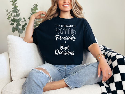 My Therapist Recommends Fireworks Bad Decisions Funny 4th of July Tee