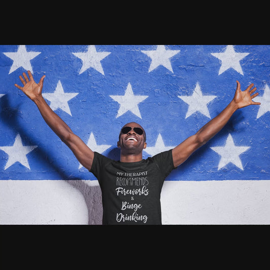 Therapist Recommends Fireworks Binge Drinking Funny 4th of July Tee