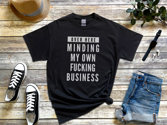 Over Here Minding My Own Fucking Business Tee – Privacy Advocate Shirt