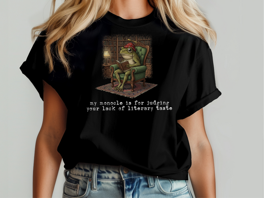 Monocle Frog Judging Literary Taste. Academic Book Snob Sarcastic Tee.