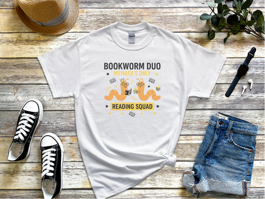 Bookworm Duo. Exclusive Reading Squad. Avid Reader Community Pride.
