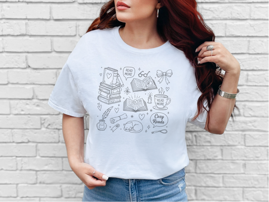 Cozy Reads Books Coffee Cats Tee - Book Lover Gift & Literary Art