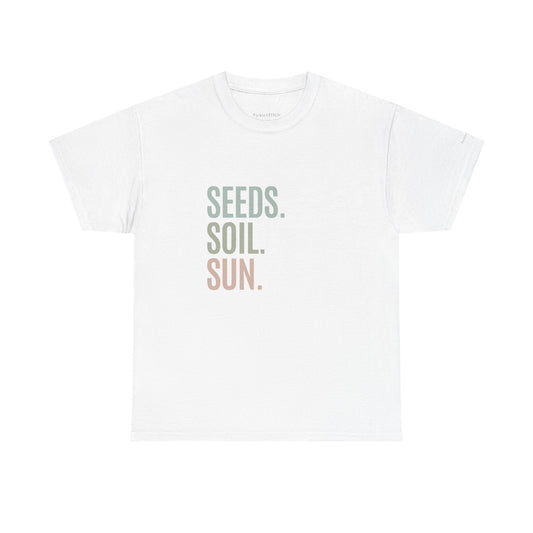 Seeds. Soil. Sun. Gardening Trinity Plant Parent Green Thumb T-Shirt