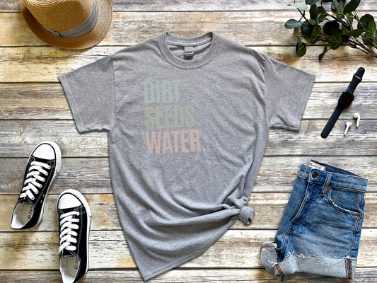 Dirt. Seeds. Water. Graphic T-Shirt | Plant Parent & Green Thumb Gardening Tee