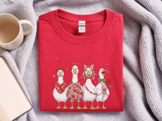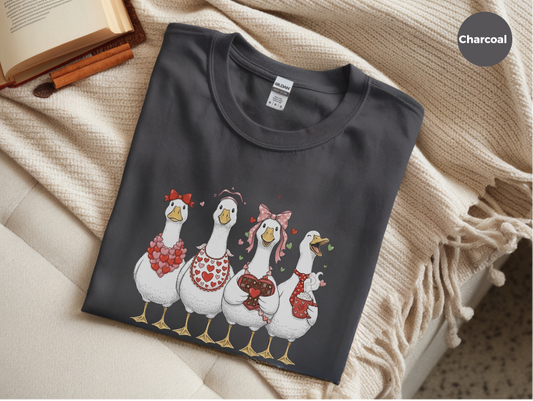 Sweet Goose Valentine Party Shirt - Funny Geese & Hearts Design
