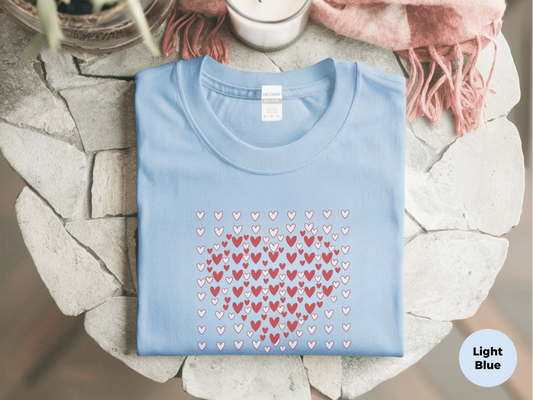 Galentine's Day Heart Mosaic Sketchy Red White Love Pattern Tee