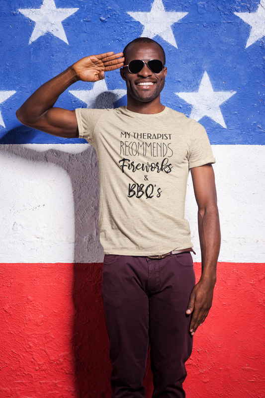 My Therapist Recommends Fireworks & BBQs Funny Independence Day Tee