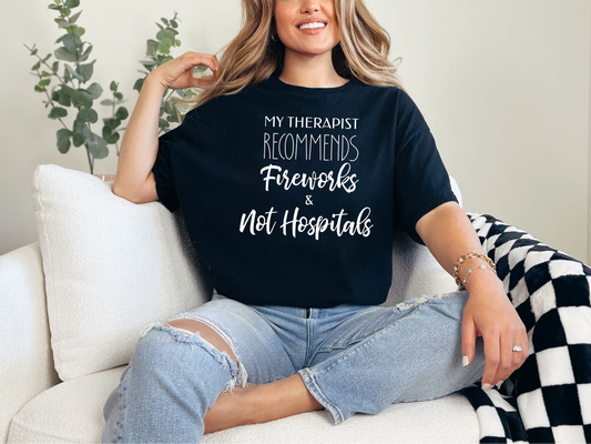Therapist Recommends Fireworks Not Hospitals Anti-Hospital Humor Tee