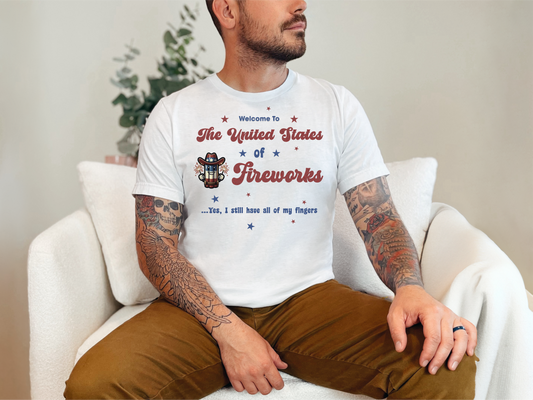 USA Fireworks Patriotic Celebration American Flag Stars Stripes Tee