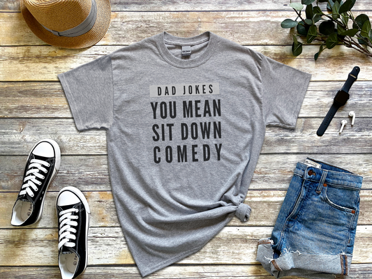 You Mean Sit Down Comedy T-Shirt | Funny Dad Joke Graphic Tee | Witty Humor Gift