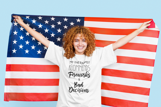 My Therapist Recommends Fireworks & Bad Decisions Funny T-Shirt | Sarcastic Humor Tee