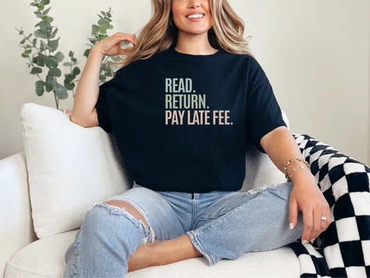 Library Humor Tee: Read. Return. Pay Late Fee. Book Lover Gift
