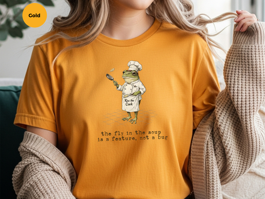 Fly In Soup Feature Not Bug Tech Humor Chef Frog Sarcastic T-Shirt