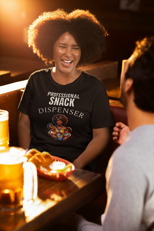 Funny "Professional Snack Dispenser" T-Shirt for Darker Skin Moms | New Mama Humor & Maternity Gift