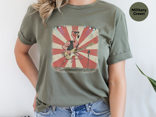 Flamingo Bassist Rock & Roll Animal Musician Vintage Sunburst Tee