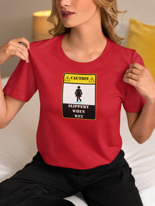 Slippery When Wet Adult Humor T-Shirt for Edgy Comedy Fans