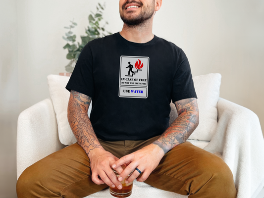 In Case Of Fire Do Not Use Elevator Use Water Safety Humor Tee