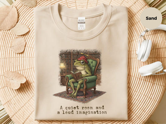 Quiet Room, Loud Imagination Frog T-Shirt. Introvert Book Lover Gift