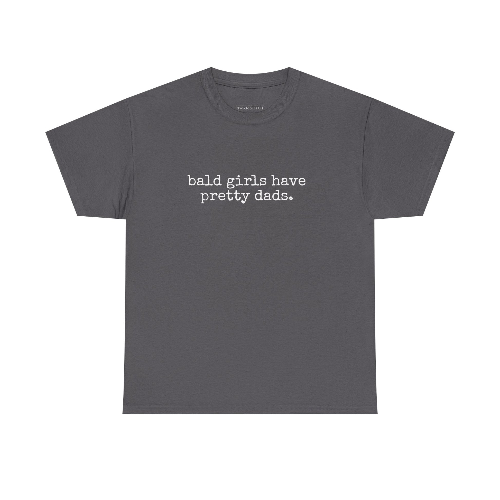 Embrace the humor and unique bond with our 'Bald Girls Have Pretty Dads' parody shirt, a playful twist on a classic saying. This tee is designed for anyone who appreciates a good laugh and celebrates the special connection between fathers and daughters. Perfect for dads who might be a little light on top and their wonderful daughters, this shirt makes a fantastic gift for Father's Day, birthdays, or just because. It’s a witty way to acknowledge the 'no hair' look while highlighting the 'pretty dads' in a loving, funny light. Show off your family's sense of humor and pride with this conversation-starting apparel. Crafted for comfort and style, it’s more than just a shirt; it’s a statement of affection and a testament to the unique dynamics of father-daughter relationships. A thoughtful present for any dad or daughter looking to share a laugh and a memorable moment.