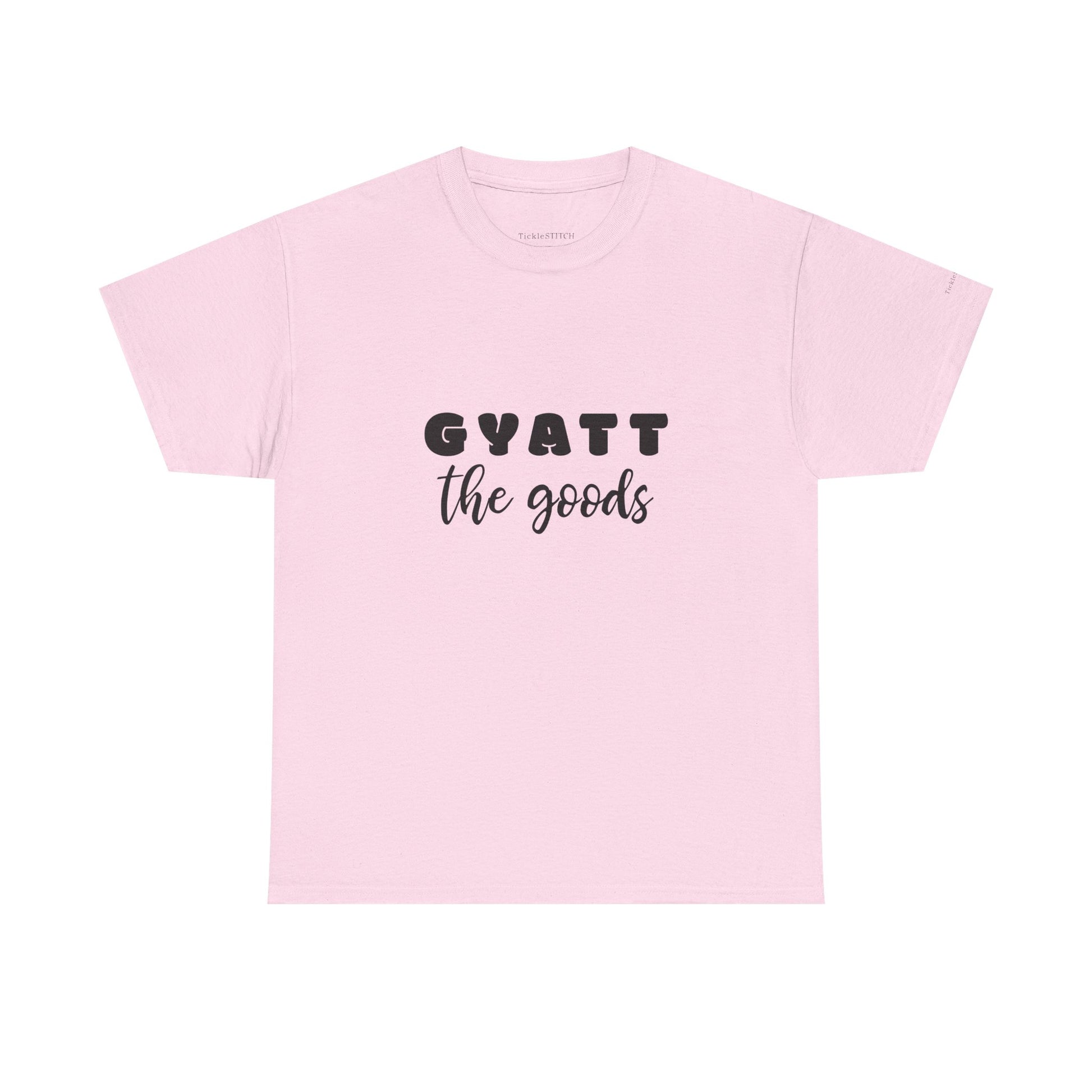 Show off your booty goals and let everyone know you've "got the goods" with this unique apparel designed for those who appreciate big butt humor and a confident stride This shirt blends modern slang with a powerful message of self-acceptance and strength, making it an essential addition to your wardrobe Feel empowered and fashionable, whether you're hitting the gym or just enjoying a day out, all while radiating that undeniable "Gyatt" energy.