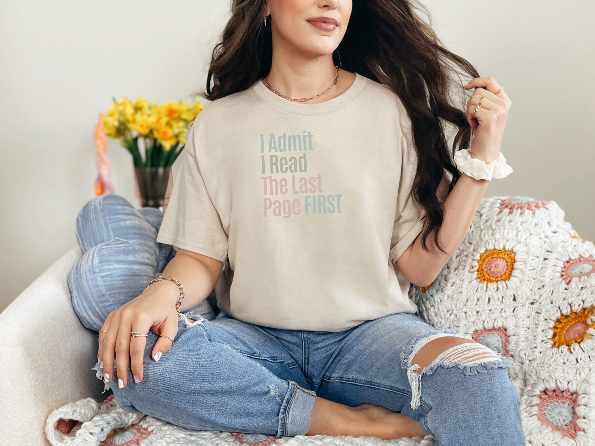 Embrace your unique reading personality with this hilarious "I Admit I Read The Last Page First" shirt, perfect for every book lover confession moment. If you are a dedicated spoiler reader who just cannot resist knowing the book ending spoiler before diving in, this book reader humor tee speaks directly to your reading compulsion. This funny reading shirt captures the essence of those common bookworm problems, acknowledging that sometimes the reading behavior of a bibliophile confession means skipping ahead. Ideal for anyone whose reading habits include a touch of impatience, this book lover quirks apparel makes a great gift for readers who understand the struggle of the reading compulsion and the joy of being a book spoiler addict.