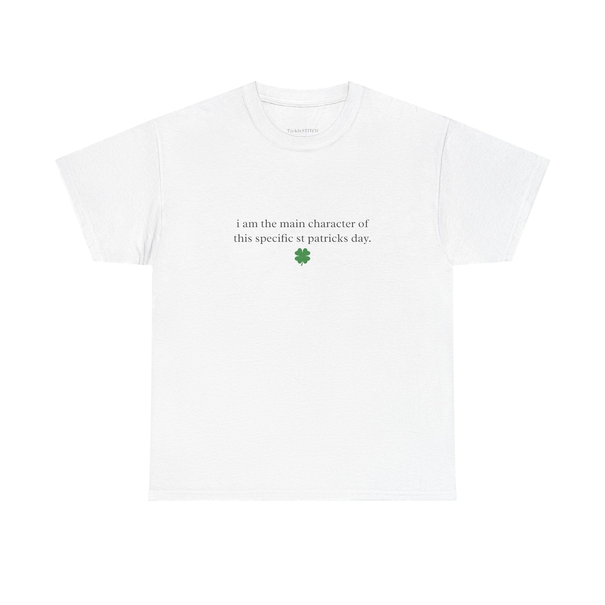 Step into the spotlight this St. Patrick's Day with our 'I Am The Main Character' graphic tee, designed for the woman who owns her confidence and brings main character energy to every celebration. This funny and sassy shirt is perfect for showcasing your unique personality and individual style, ensuring all attention is on you during the March 17 festivities. Featuring vibrant green hues and a bold statement, it's an iconic piece of green apparel that captures the spirit of Irish pride and a touch of sarcastic celtic humor. Whether you're heading to a pub crawl, a holiday party, or just enjoying the luck of the Irish, this witty and relatable tee makes an excellent holiday gift or a standout addition to your festive gear. Embrace the fun of St. Paddy's with this trendy, custom-designed novelty shirt, ideal for those who appreciate irony and want to make a memorable statement. It's more than just a shirt; it's a declaration of your festive aesthetic and a celebration of your undeniable presence.