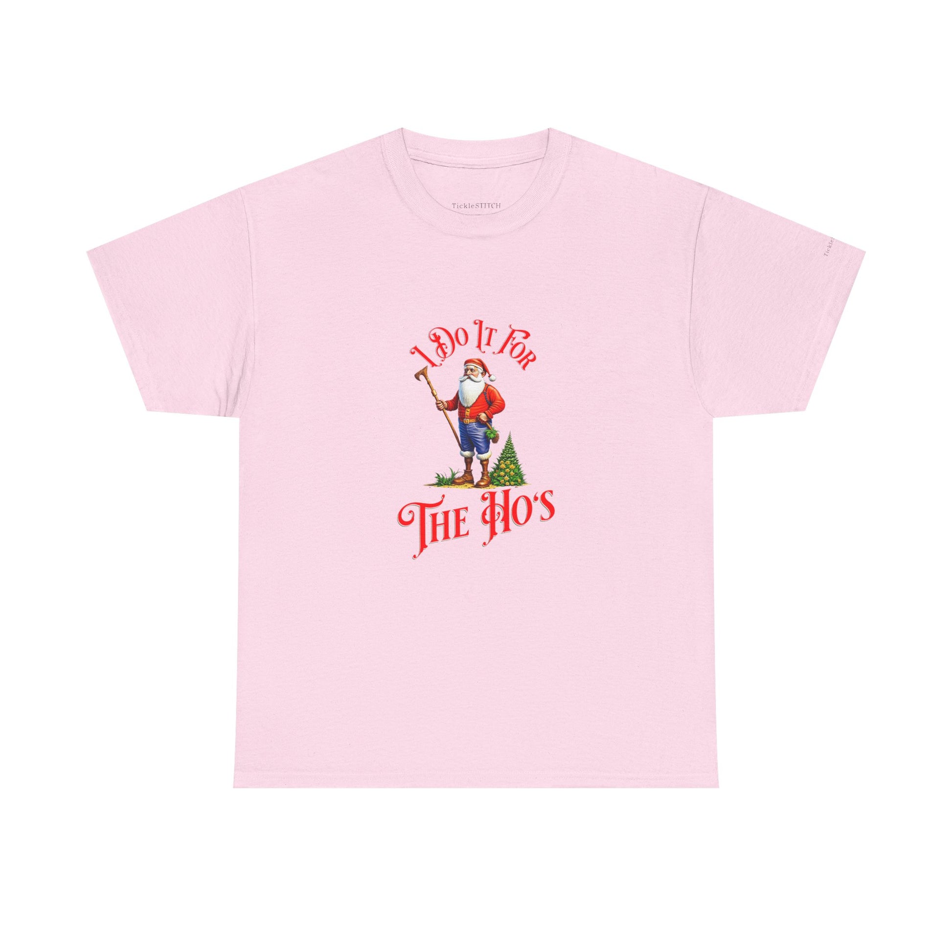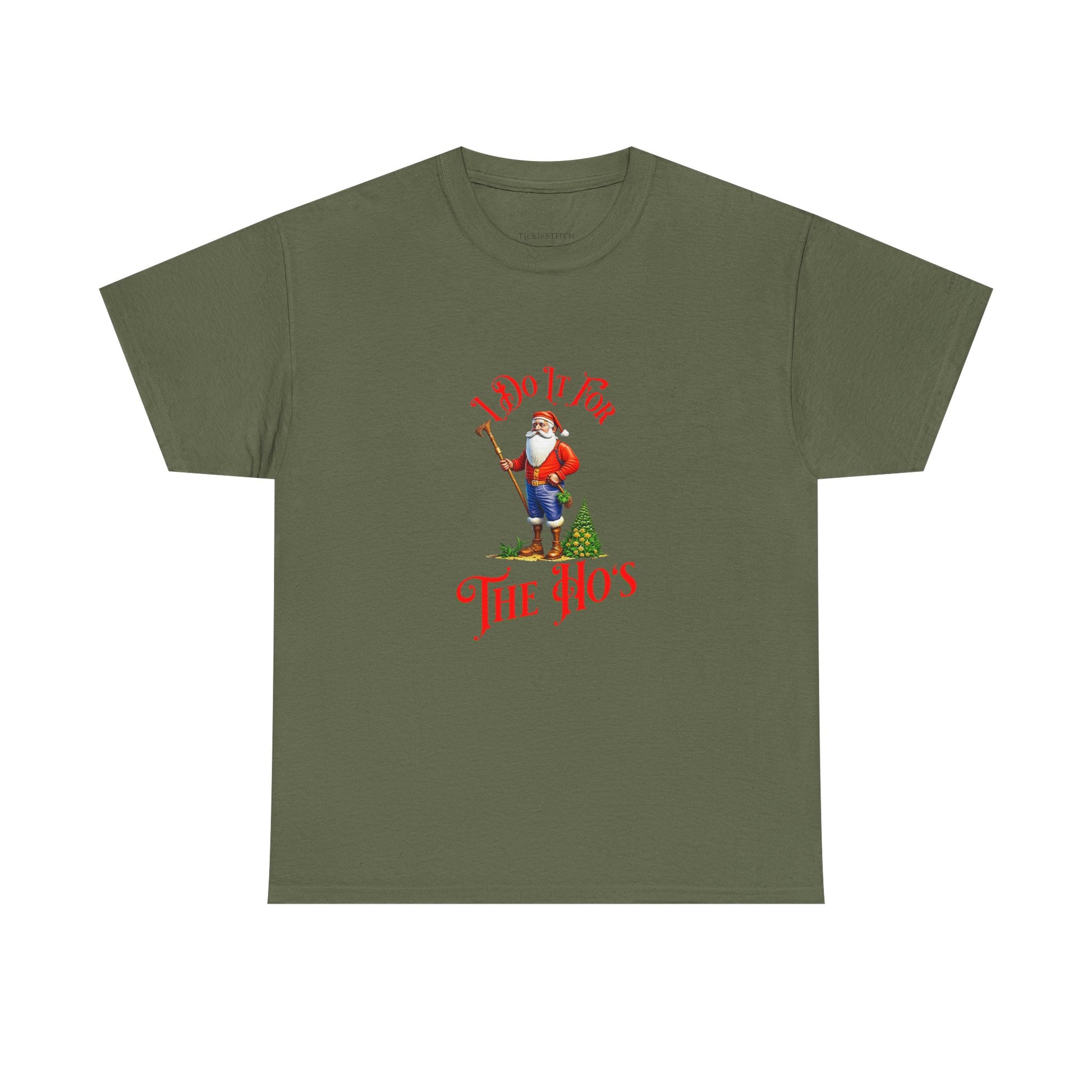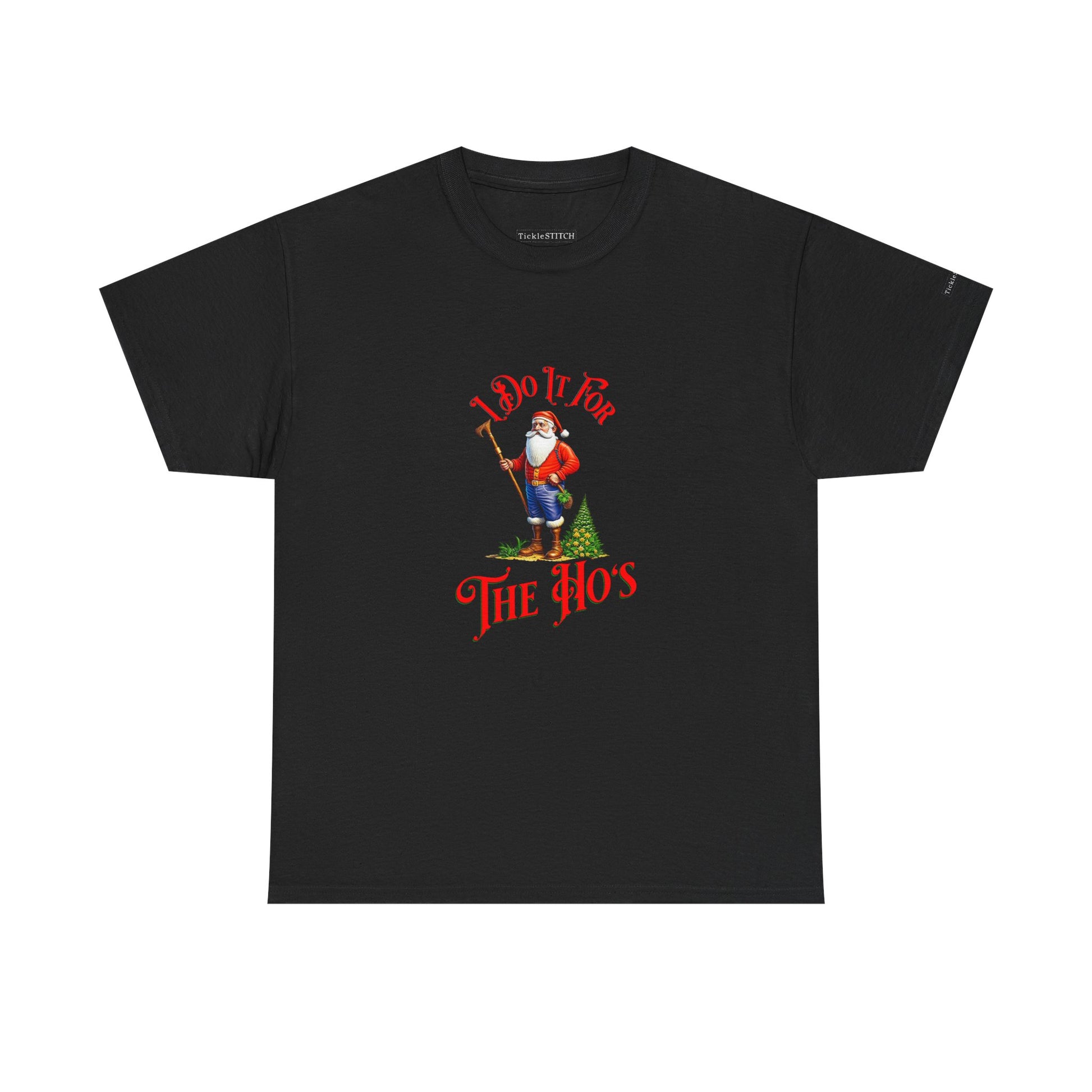This "I Do It For The Hos" shirt is the ultimate statement piece for anyone with a bold sense of humor this holiday season Perfect for an ugly sweater contest, a lively Christmas party, or simply spreading some festive sarcasm, this tee takes the classic "Ho Ho Ho" and gives it a hilarious, unexpected twist Featuring a playful Santa pimp theme, it's designed to spark laughter and turn heads.