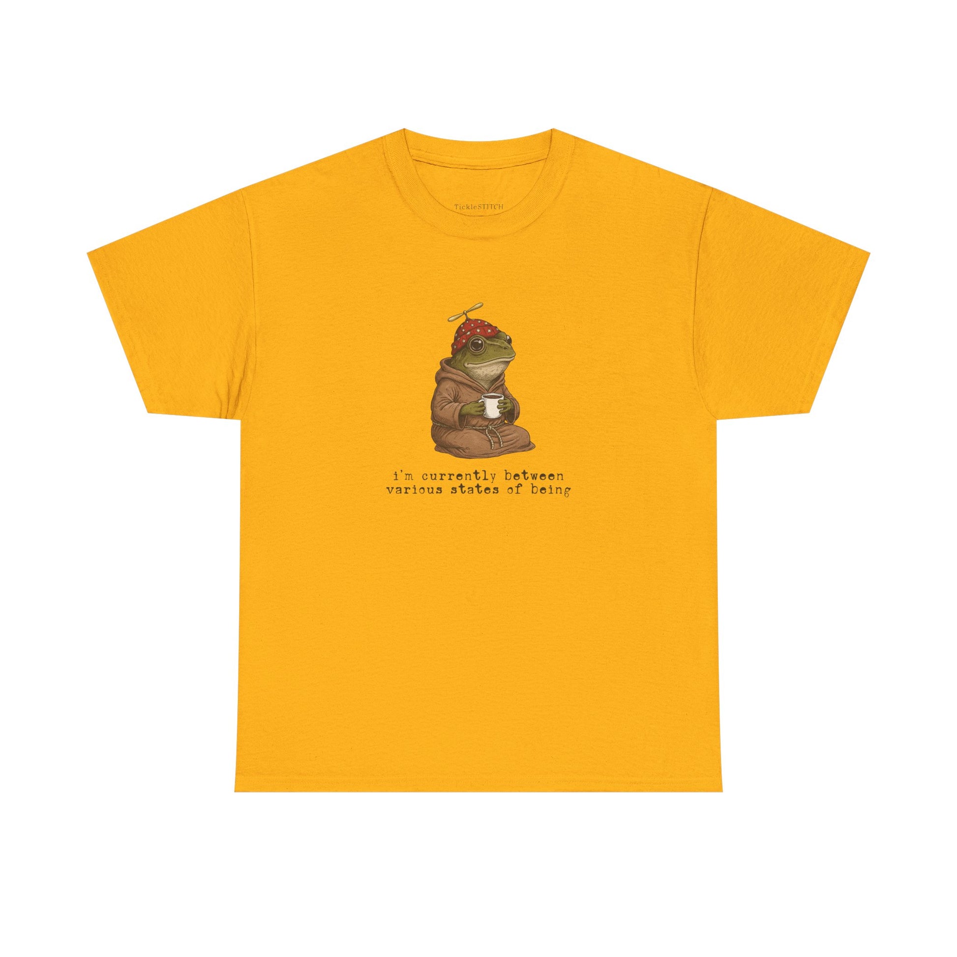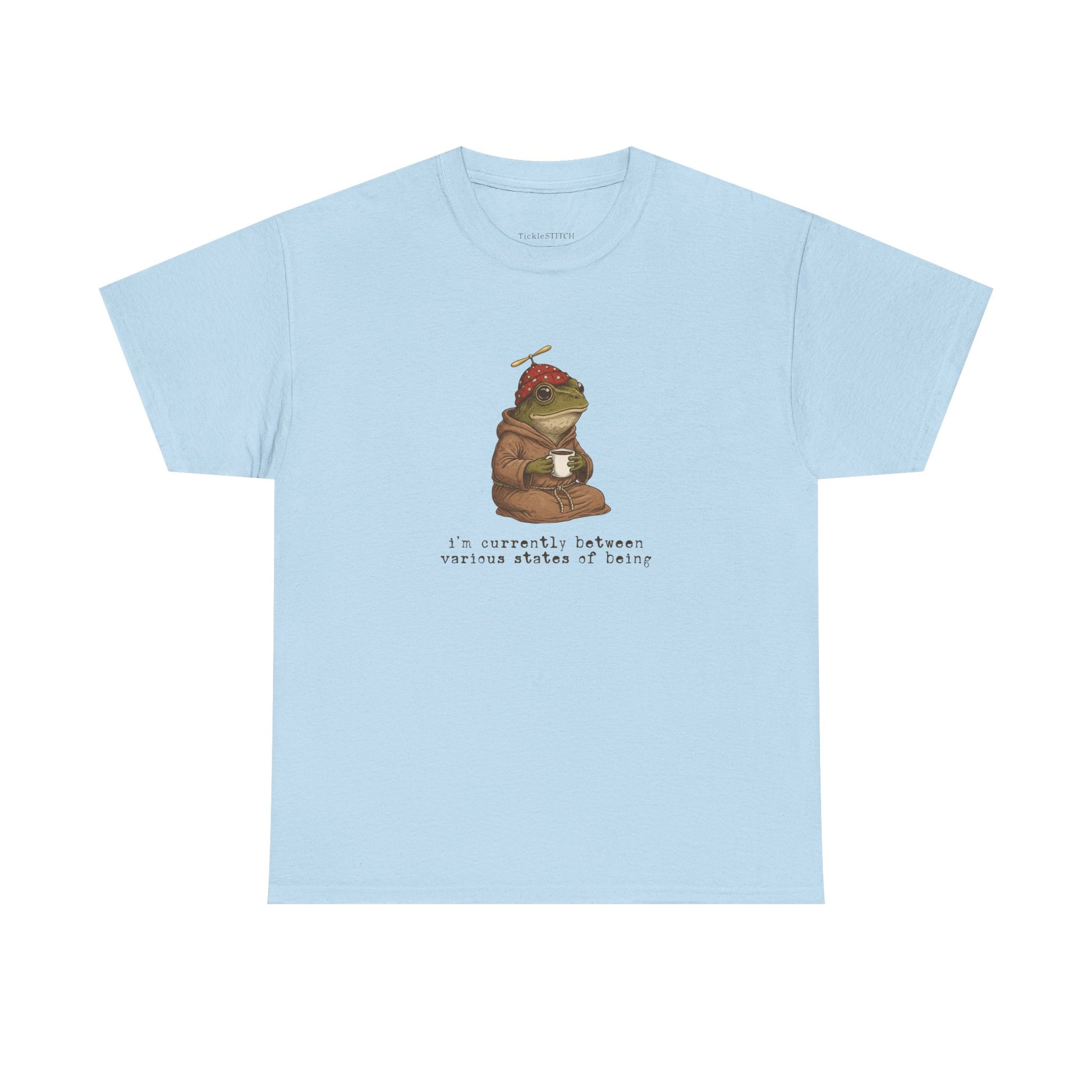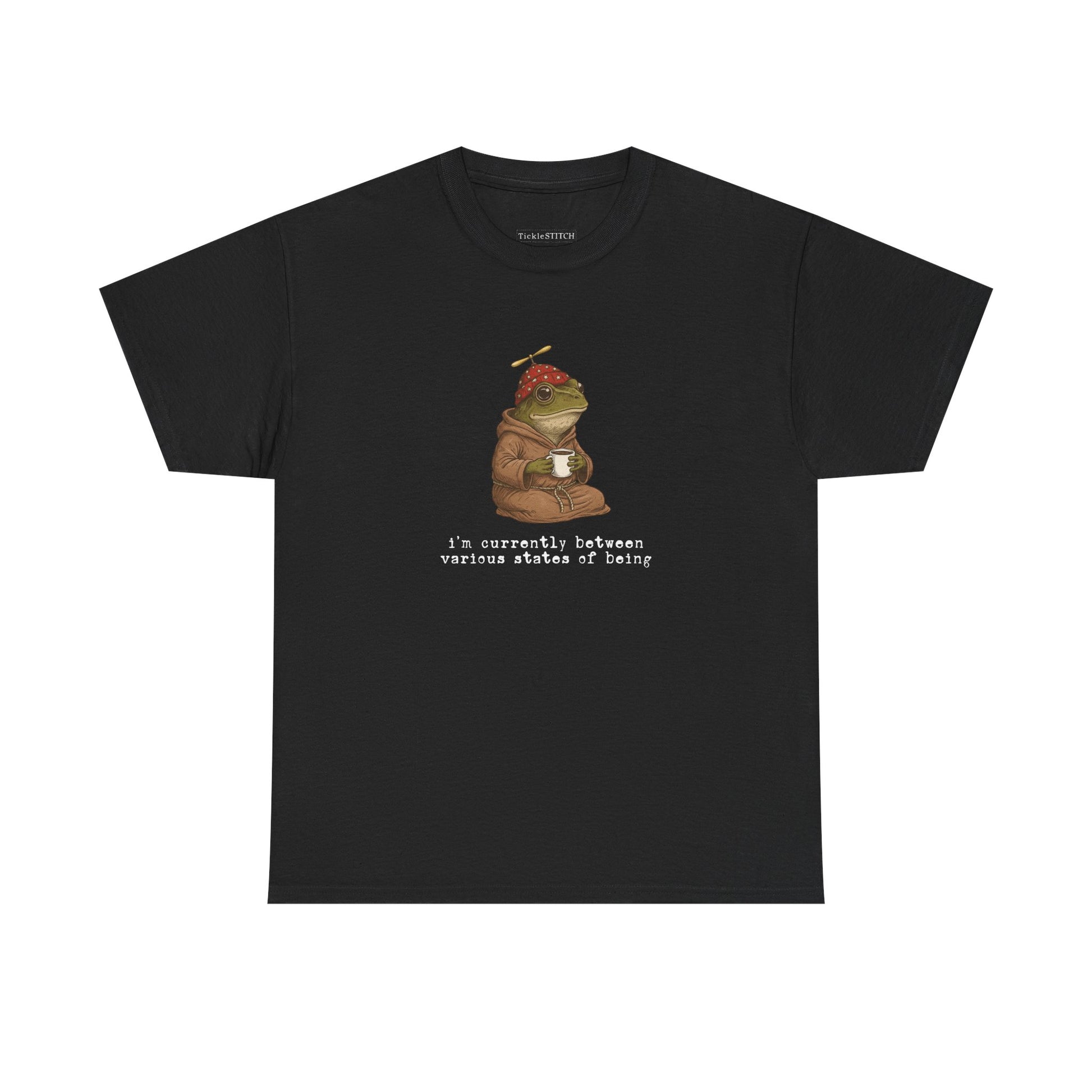 Channel the delightful ambiguity of existence with our 'I’m Currently Between Various States of Being' frog t-shirt, a perfect blend of absurdist humor and weirdcore aesthetic. This unique graphic tee captures an existential frog philosophically pondering its place, ideal for anyone navigating spiritual confusion, dissociation humor, or a quiet existential crisis. Featuring a whimsical, hand-drawn frog illustration, perhaps in a wizard robe or with a coffee, this shirt speaks to deep thoughts and surreal art lovers who appreciate niche internet memes and liminal space vibes. It’s a statement for the space cadet, the daydreaming frog, or anyone experiencing a reality glitch or out-of-body moment. Crafted for comfort and style, this metaphysical shirt makes a fantastic gift for frog lovers, introverts, or those with an oddly specific sense of humor, offering unique status to those who float through life with a transcendental, ethereal aesthetic. Perfect for fans of quirky t-shirt designs and anthropomorphic animal art, this tee expresses your unique mental state and love for all things whimsical and deep.