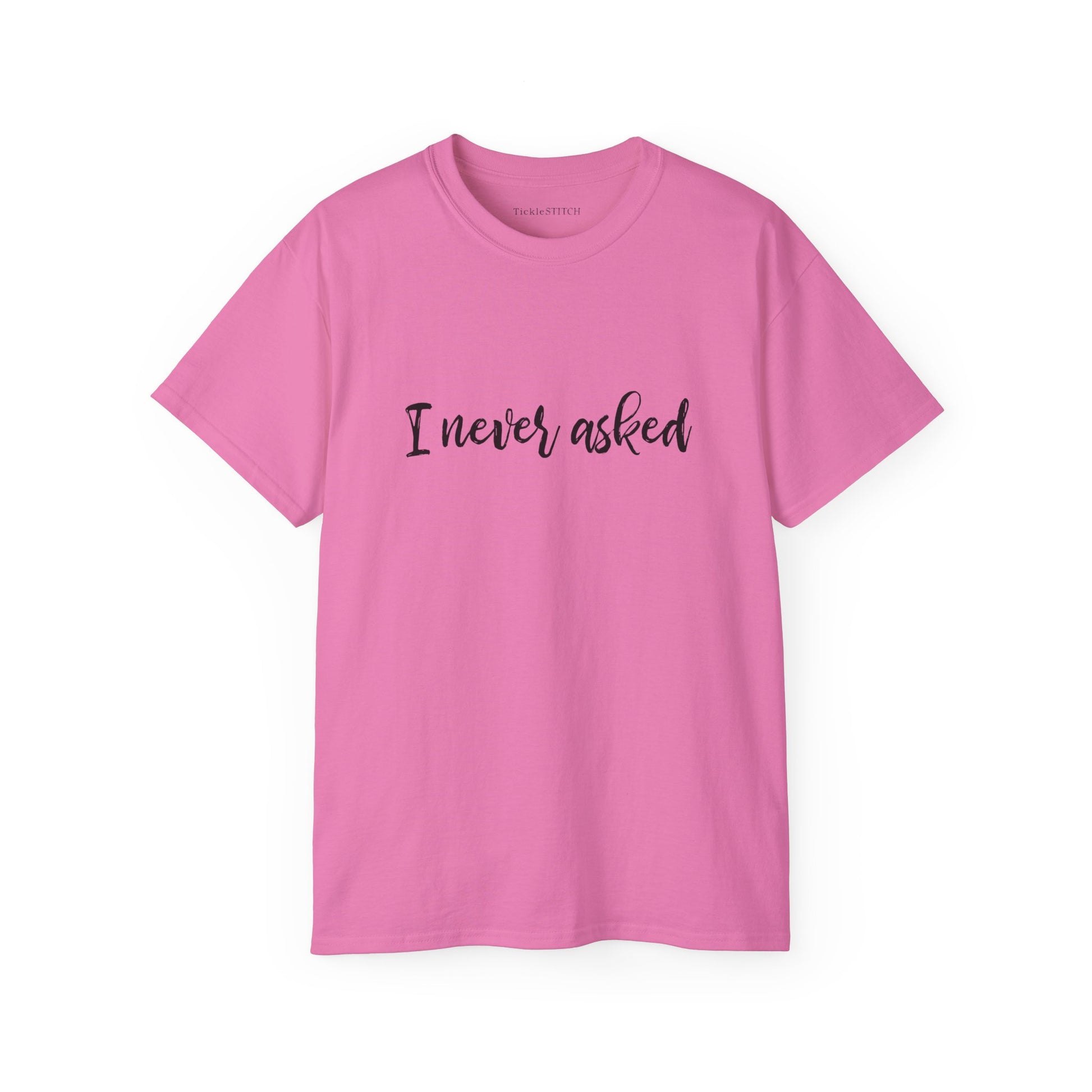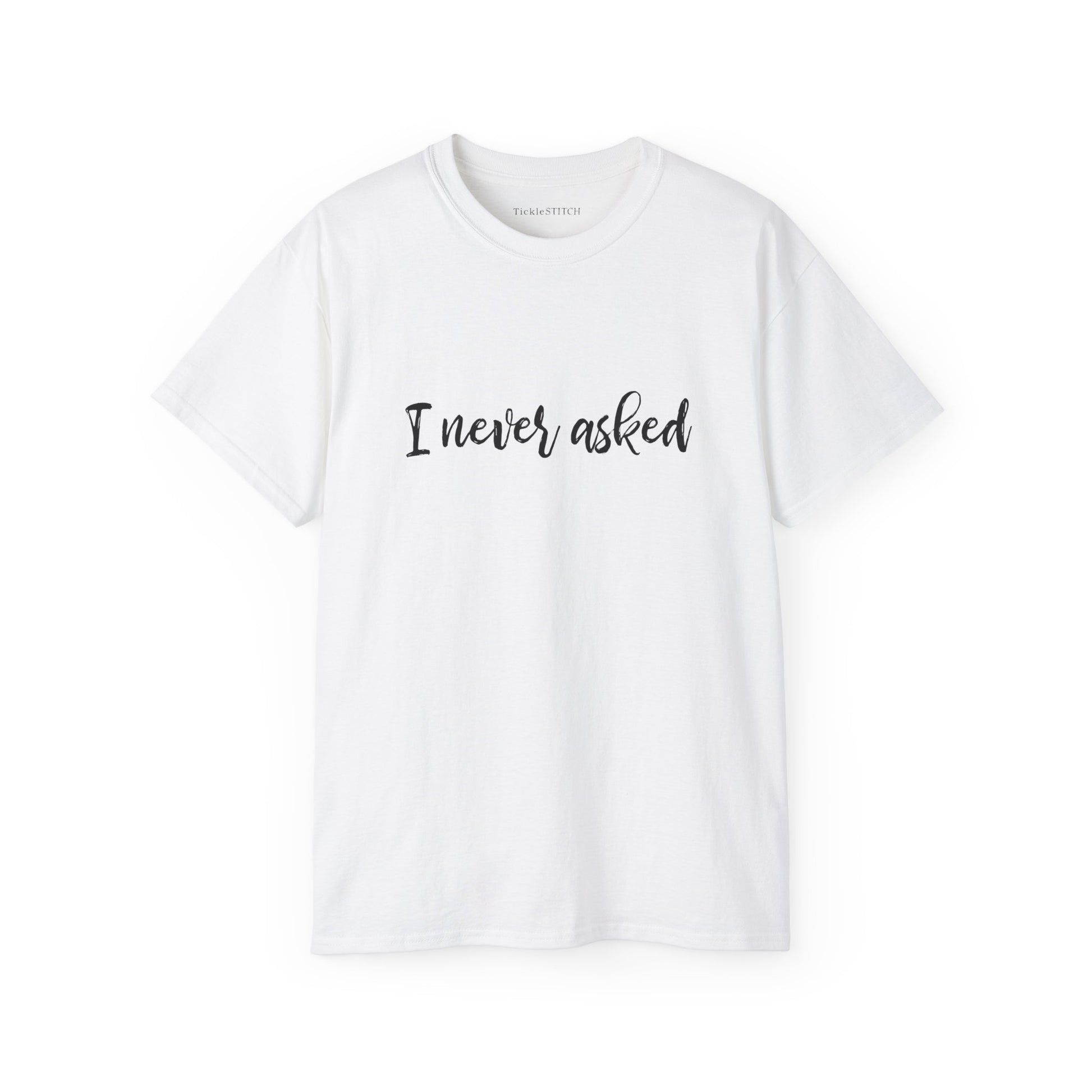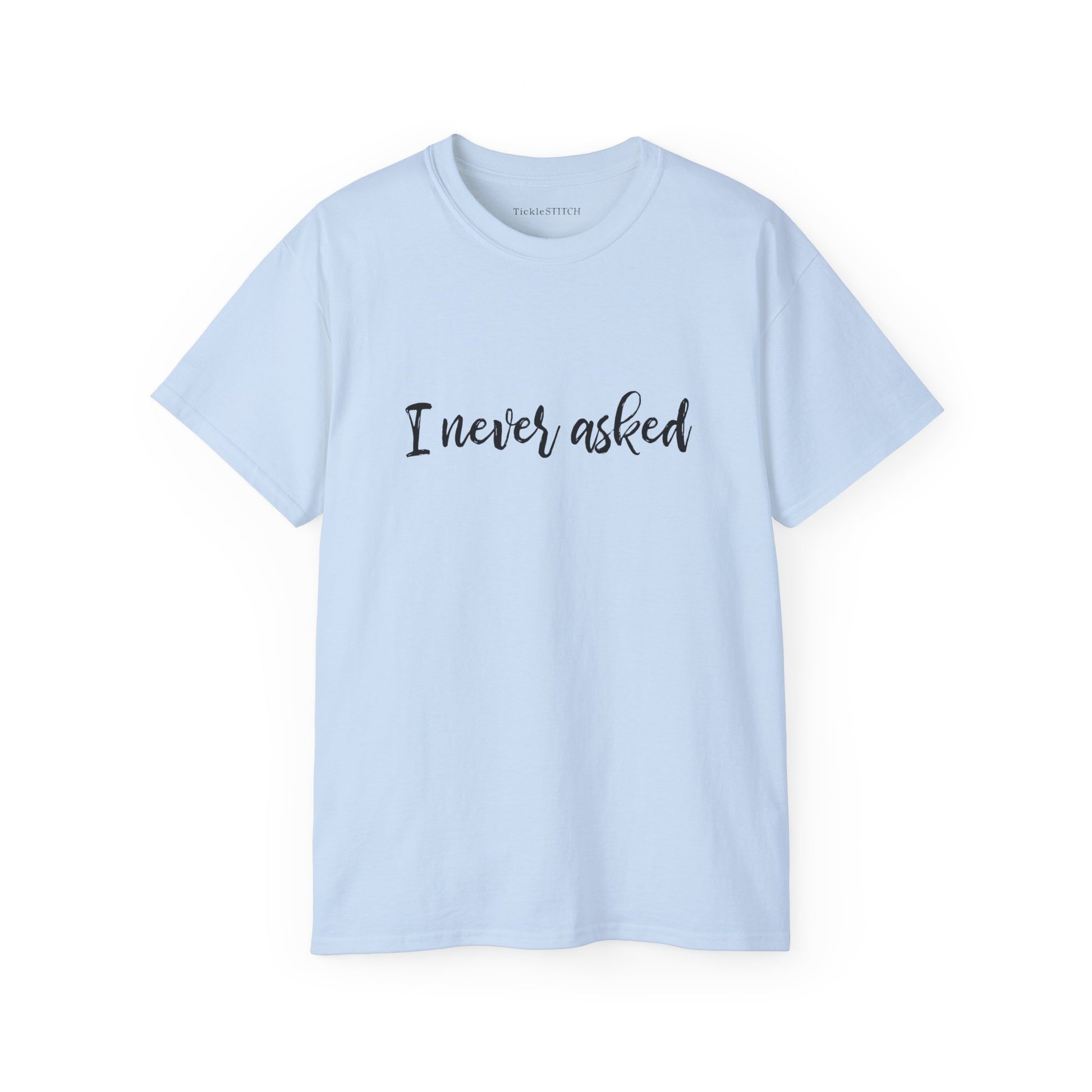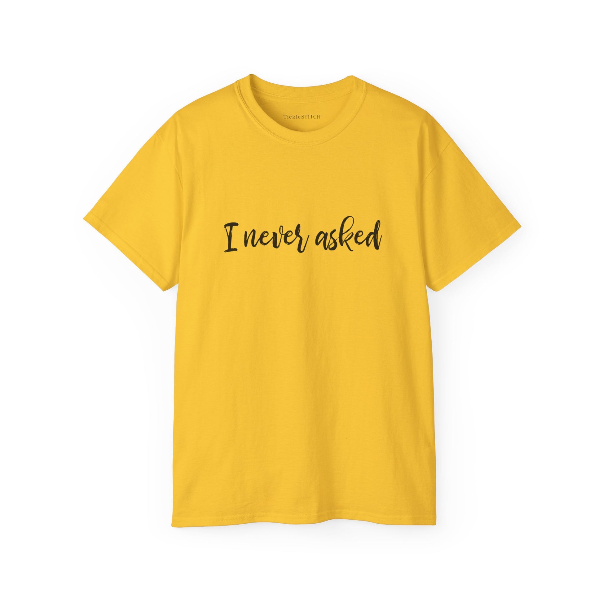 It’s a great way to showcase your unique sense of humor and let your shirt do the talking. The "I Never Asked" tee is the ultimate uniform for anyone with a bit of an attitude problem and a talent for dismissive humor.