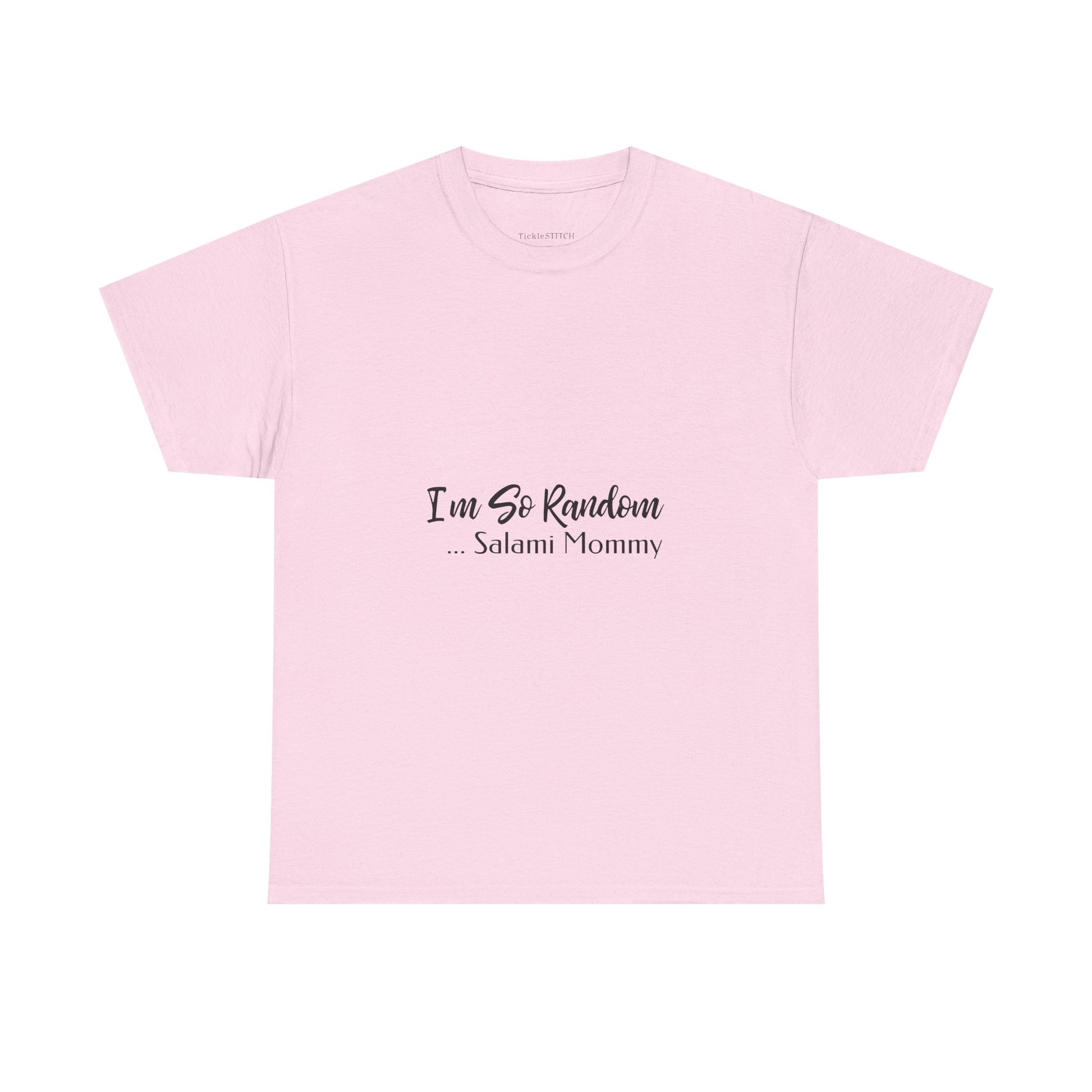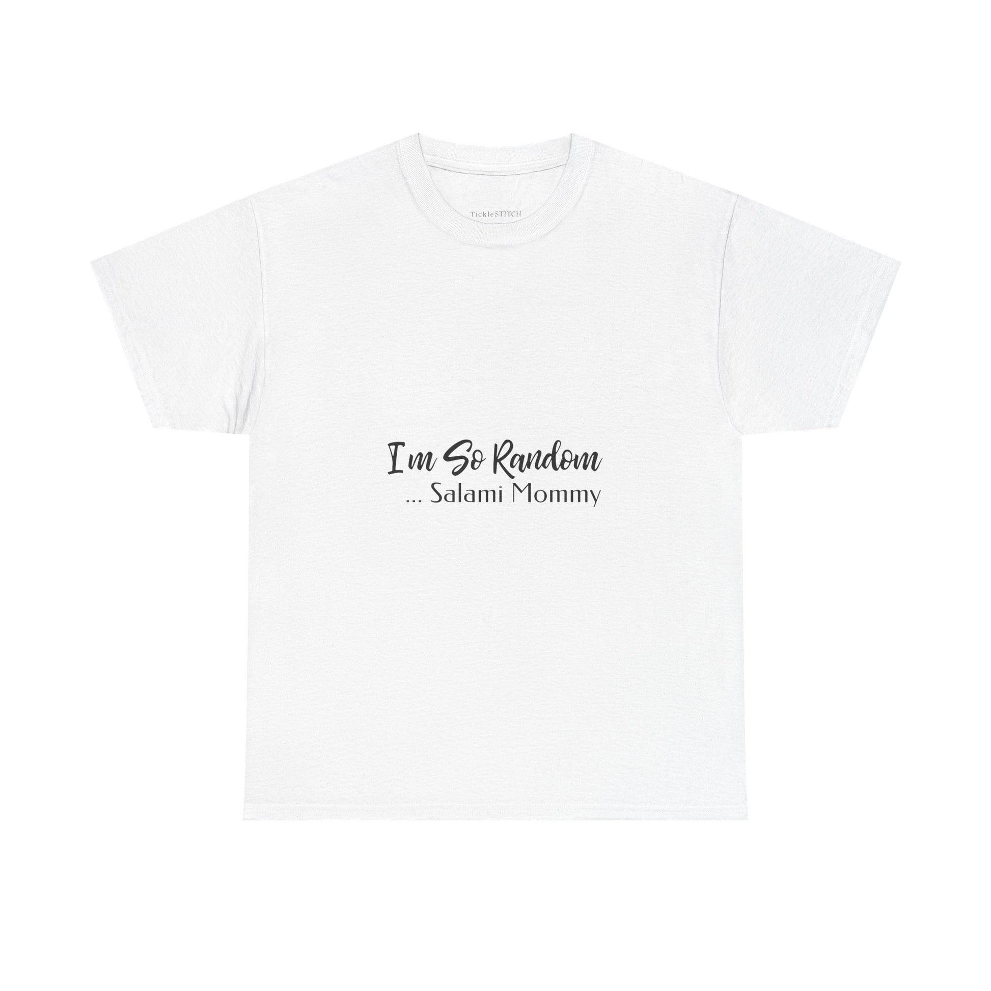 Unleash your unique sense of humor with the 'I'm So Random, Salami Mommy' tee, the ultimate funny mom shirt for those who appreciate absurdist comedy and weird mom humor. This novelty clothing piece is perfect for the mom who loves to stand out, offering a blend of random funny tee vibes and an edgy mom gift appeal. It's more than just a shirt; it's a statement for the unhinged tshirts enthusiast, a gag gift for mom that truly captures a one-of-a-kind personality. Whether she's a salami lover or just enjoys a good laugh, this funny text shirt speaks volumes. Ideal for those who embrace their random thoughts and aren't afraid of a little inappropriate funny shirts charm, it's the perfect way to celebrate the 'lucky momma' in your life with some cool random stuff. Forget embarrassing tshirts of the past; this mystery shirt is designed for the bold and the hilarious, making it a memorable salami funny present.