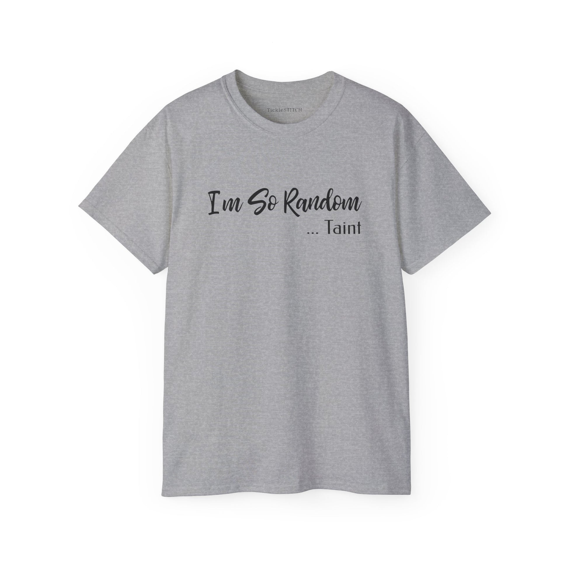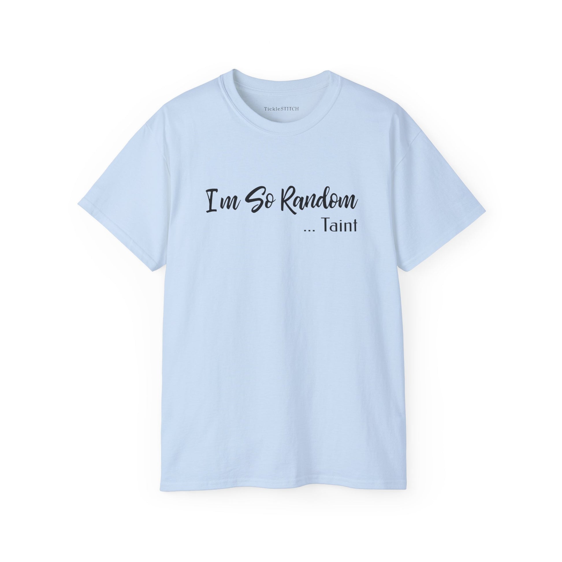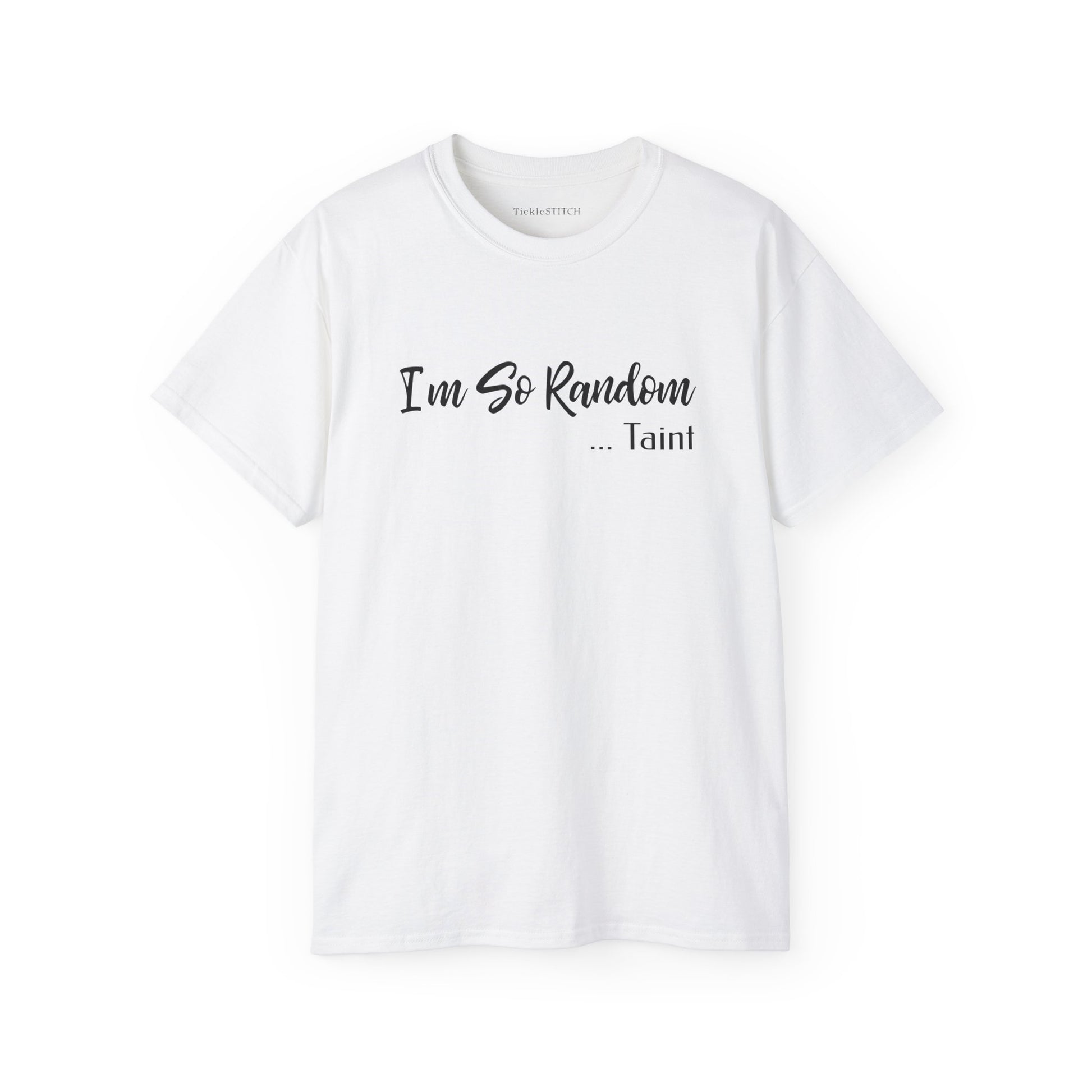 Dare to be different? Unleash your unhinged humor with the 'I'm So Random, Taint' T-Shirt, a truly offensive adult humor tee designed for those who revel in shock and awe. This controversial men's t-shirt takes 'random funny' to a whole new level, blending crotch humor with oddly specific, vulgar tee shirt audacity. It's more than just a novelty shirt; it's a statement piece, a cursed shirt for the bold and the brave.