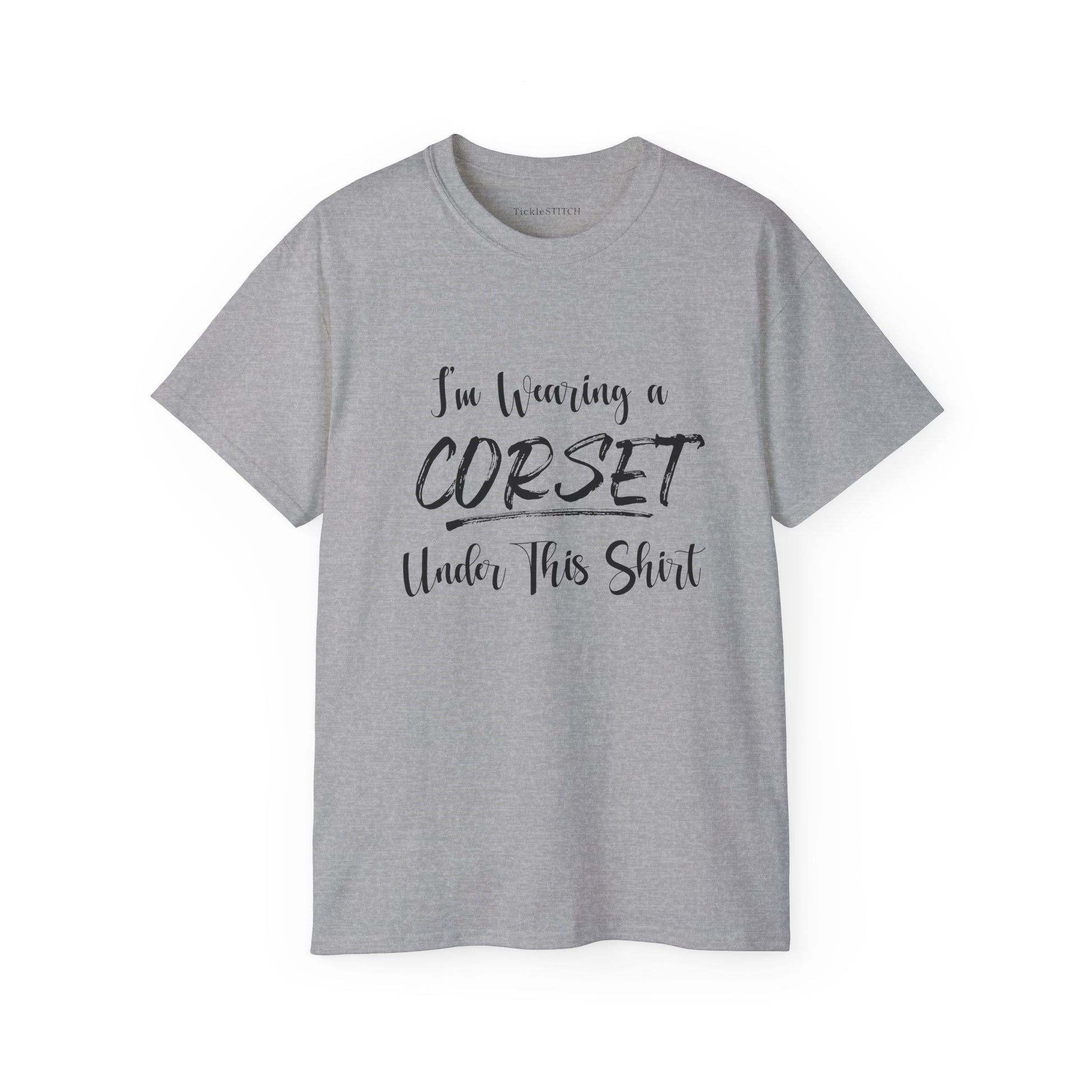 Unveil your secret style with our witty 'I'm Wearing a Corset Under This Shirt' funny t-shirt! This unique graphic tee is perfect for anyone who appreciates a good laugh and a touch of historical fashion. Whether you're a fan of Renaissance Faires, historical reenactments, or just love the subtle art of corsetry, this sarcastic t-shirt is designed to spark conversations and knowing smiles. Crafted for comfort and style, this humorous t-shirt plays on the timeless appeal of Victorian and Gothic fashion, blending it with modern humor.
