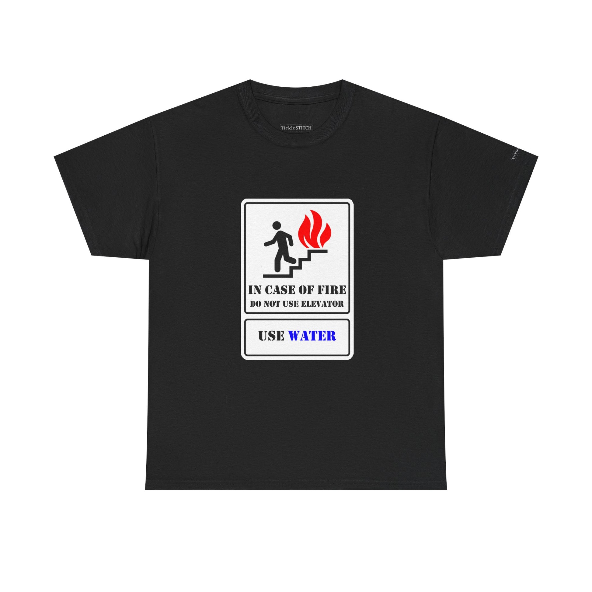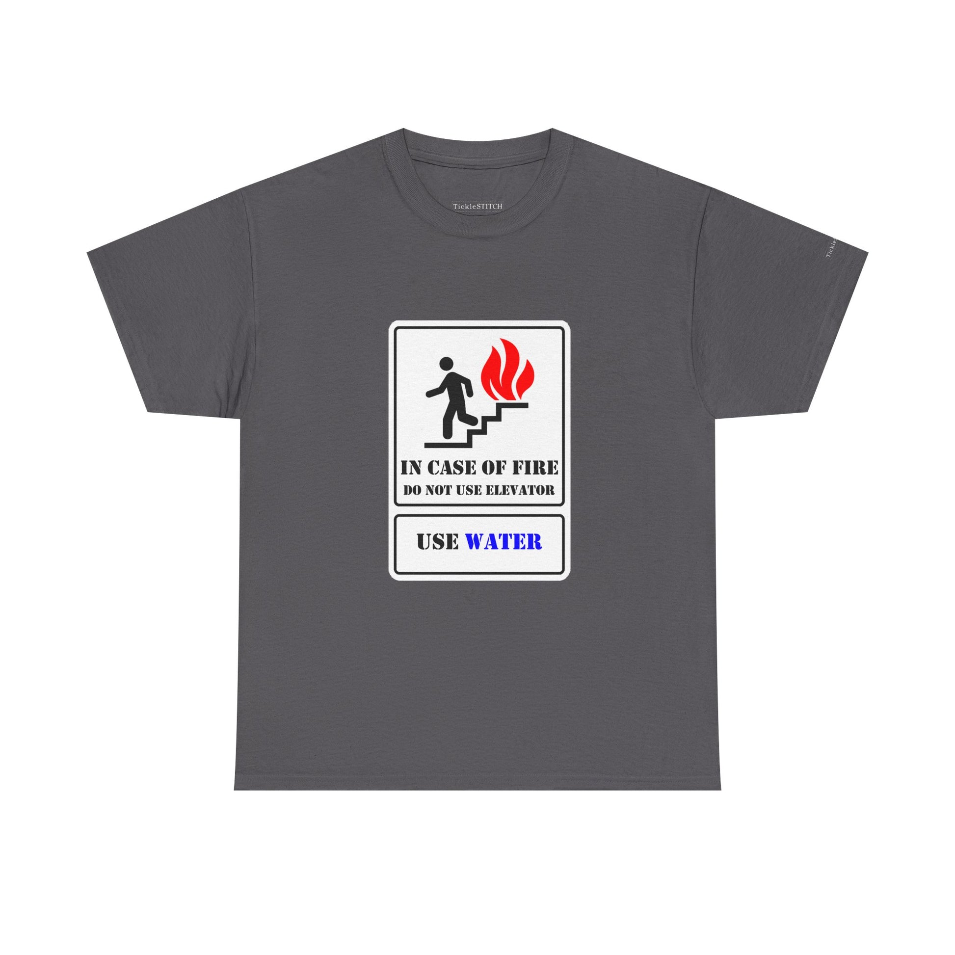 Fire Safety Humor Tee: Do Not Use Elevator Use Water Joke