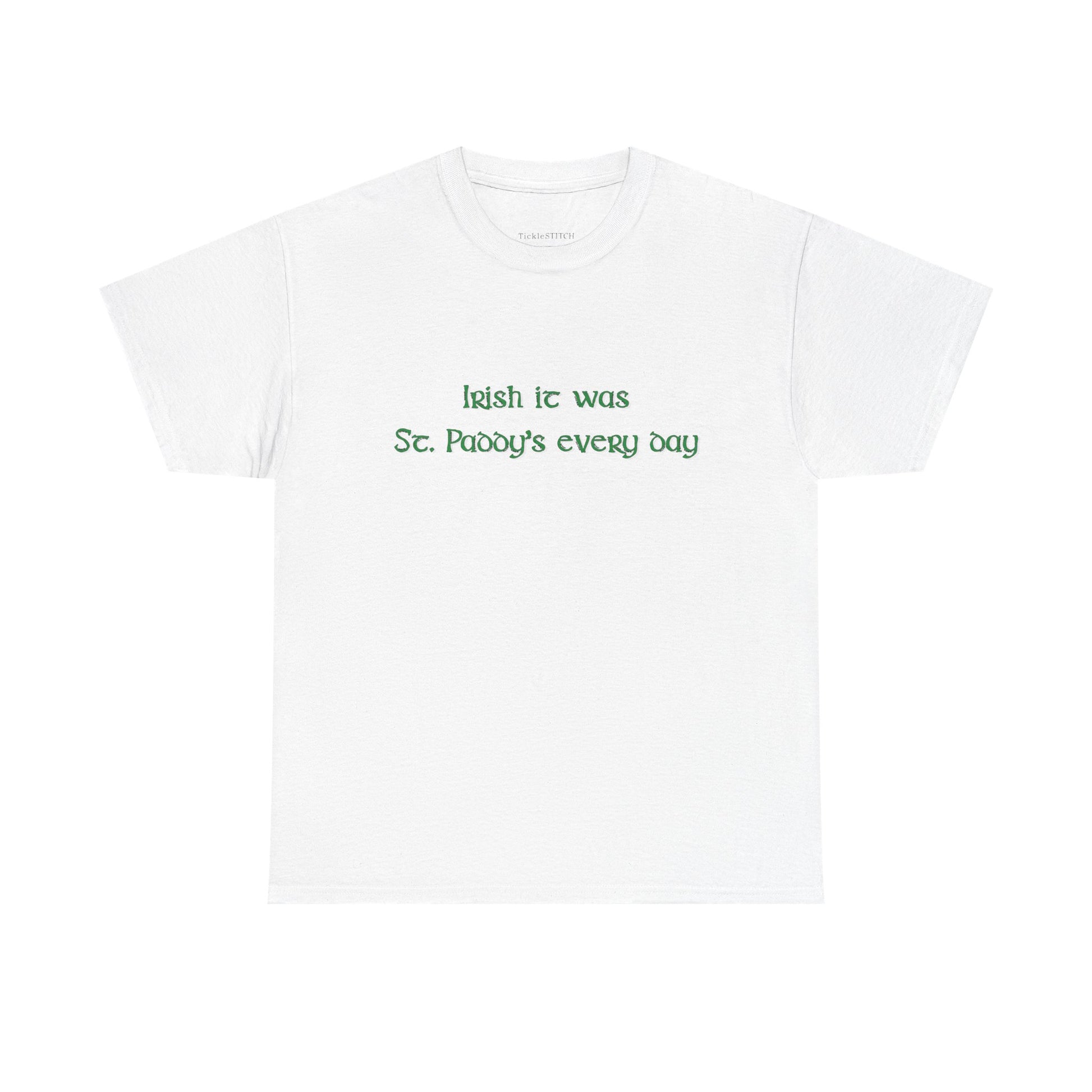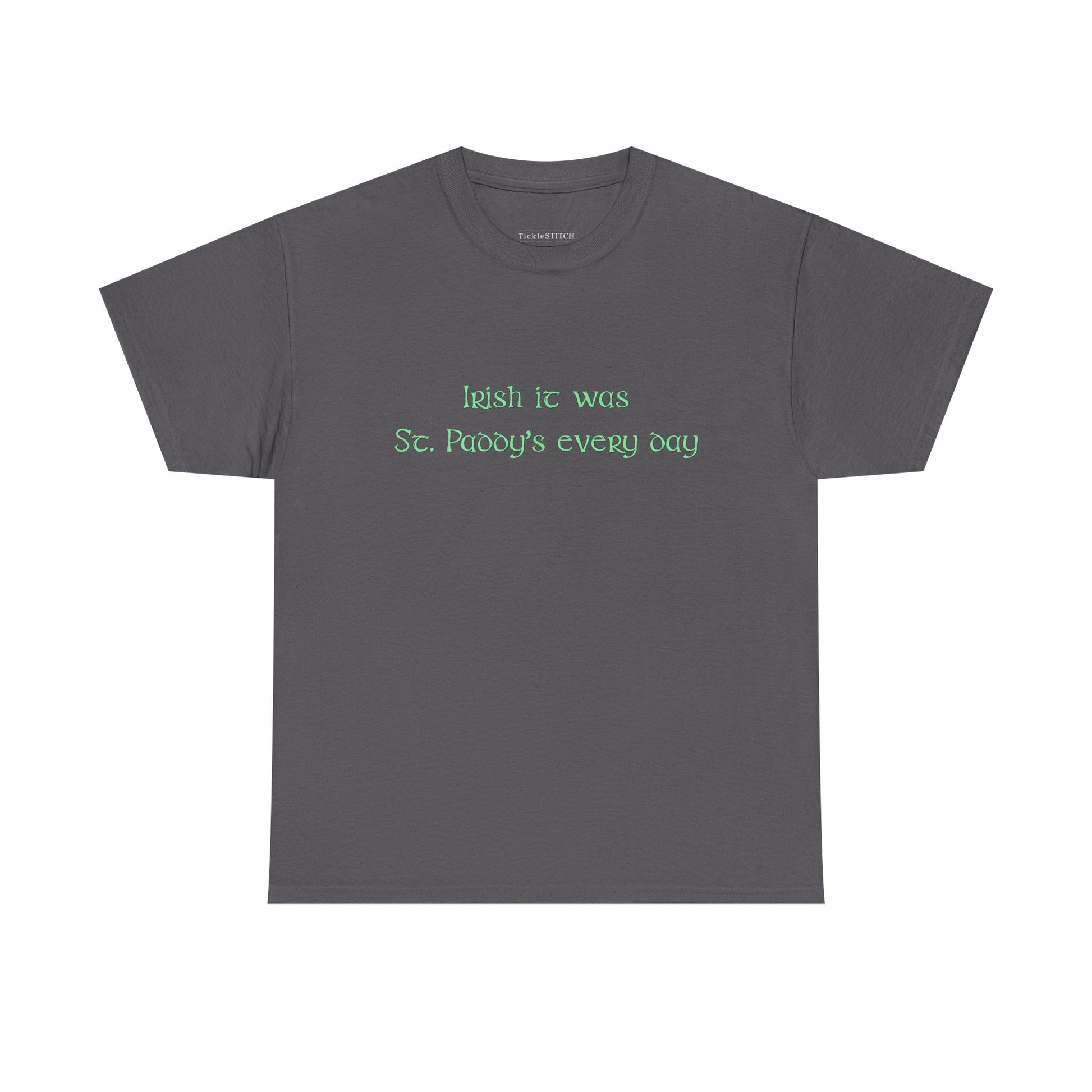 For those who believe every day should be a celebration of Irish spirit, this 'Irish it was St. Paddy's every day' tee is your perfect year-round statement. Ditch the seasonal limits and proudly display your Irish pride and heritage with this festive green apparel. Whether you're a fan of the parades, the music, the dance, or just the general joy and excitement of St. Patrick's Day, this graphic tee captures that vibrant mood. It's more than just a holiday outfit; it's an obsession, a nod to Dublin vibes and the emerald isle, bringing a touch of luck and leprechaun mischief to your daily wear. Perfect for pub crawls, family gatherings, or simply spreading happiness, this witty shirt blends celtic humor with a relatable, sarcastic Irish charm. Featuring a shamrock and cloverleaf design, it’s ideal for anyone coordinating shenanigans or just enjoying the festive aesthetic. This custom design is a great holiday gift, offering a unique slogan and a dose of luck of the Irish, making it essential festive gear for any true St. Paddy's enthusiast. Get ready to celebrate the Feast of Saint Patrick all year long with this trendy, comfortable, and conversation-starting piece of green apparel.