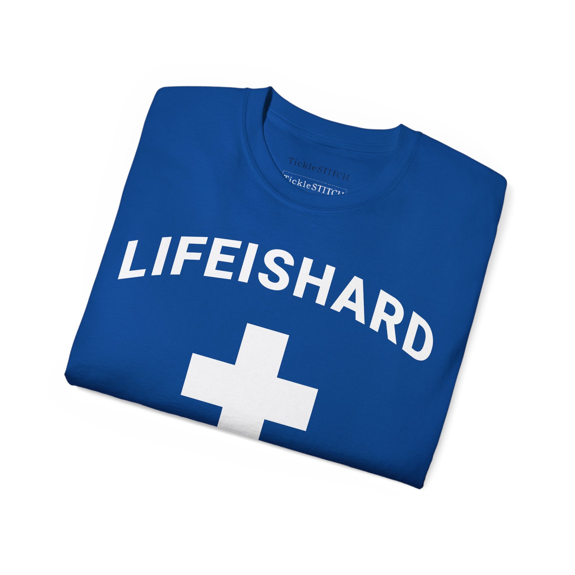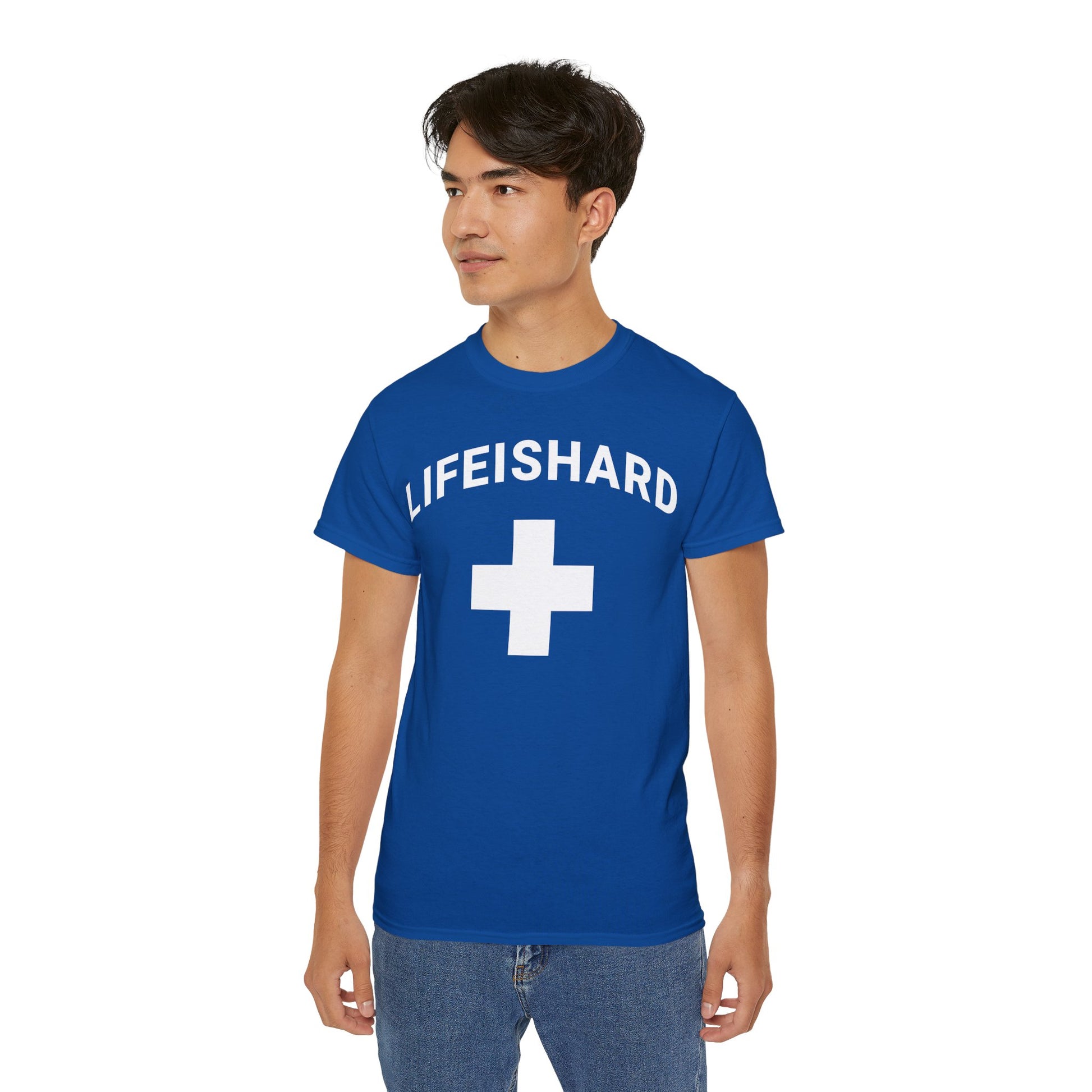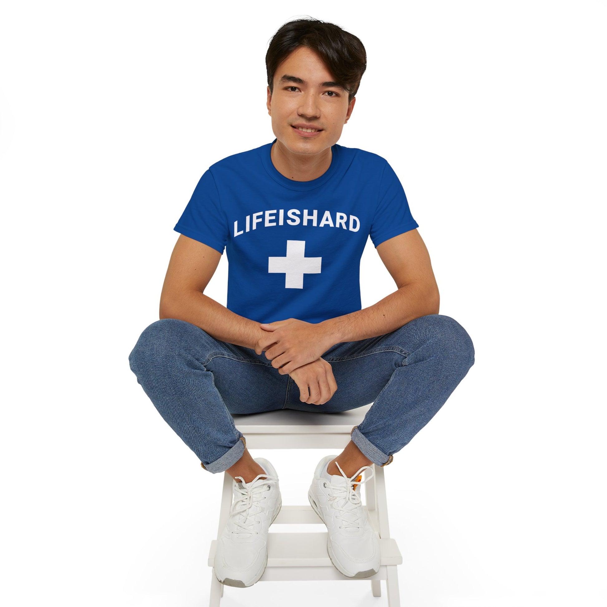 Uncover your next favorite ironic garment with our unique LIFEISHARD Lifeguard Parody T-Shirt. This graphic design perfectly captures the modern struggle, presenting a witty take for anyone navigating daily reality. It's a superb choice for people who appreciate hard life humor, sharp sarcastic insights, and a touch of existential commentary on human existence. Our comfortable fabric top provides a durable, humorous print that stands out.