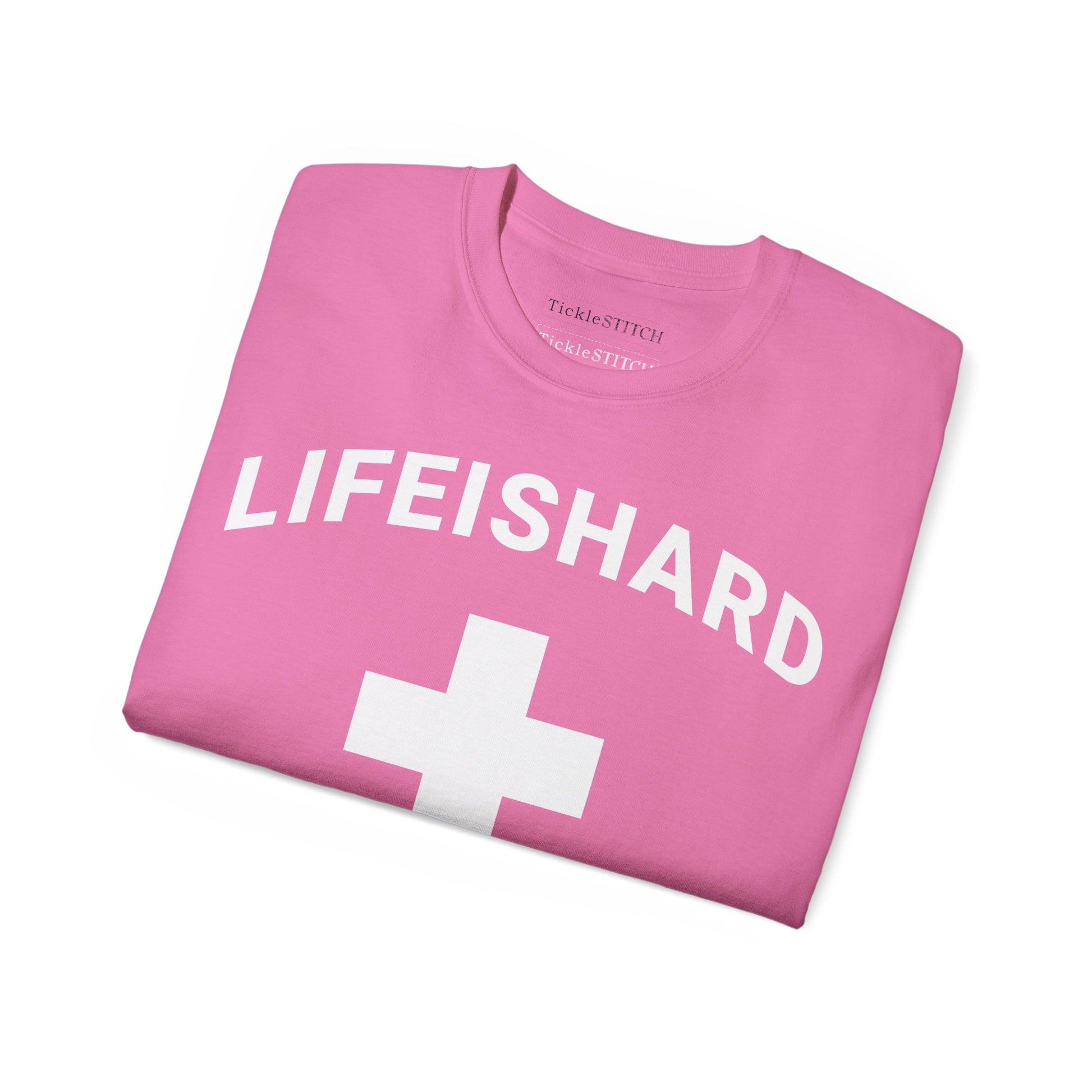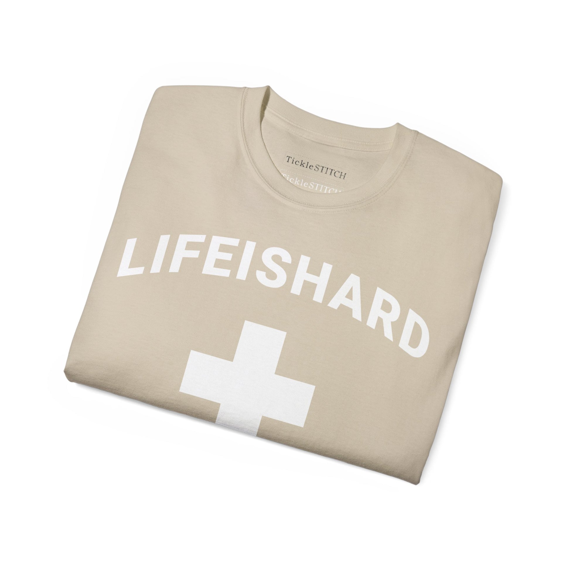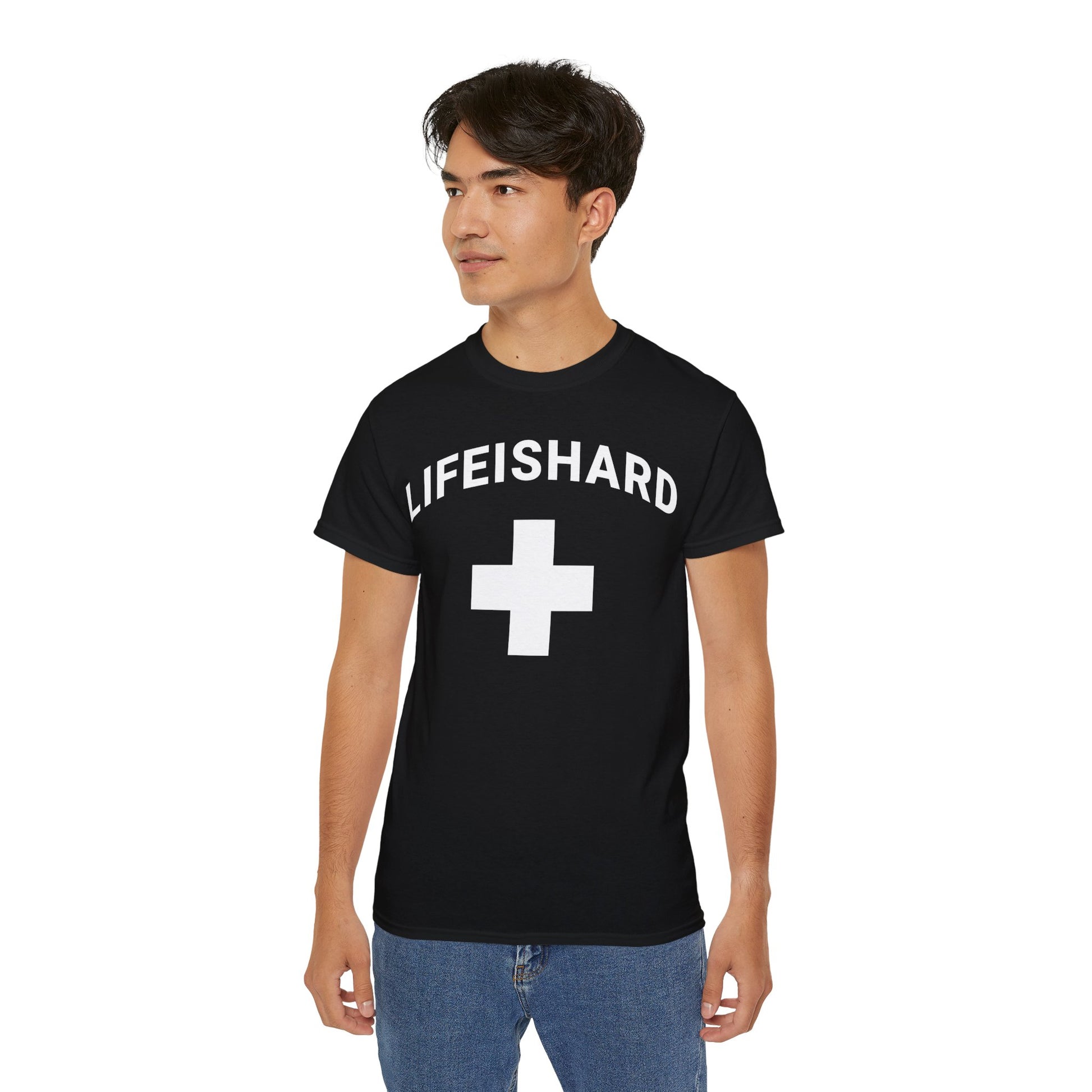 Uncover your next favorite ironic garment with our unique LIFEISHARD Lifeguard Parody T-Shirt. This graphic design perfectly captures the modern struggle, presenting a witty take for anyone navigating daily reality. It's a superb choice for people who appreciate hard life humor, sharp sarcastic insights, and a touch of existential commentary on human existence. Our comfortable fabric top provides a durable, humorous print that stands out.