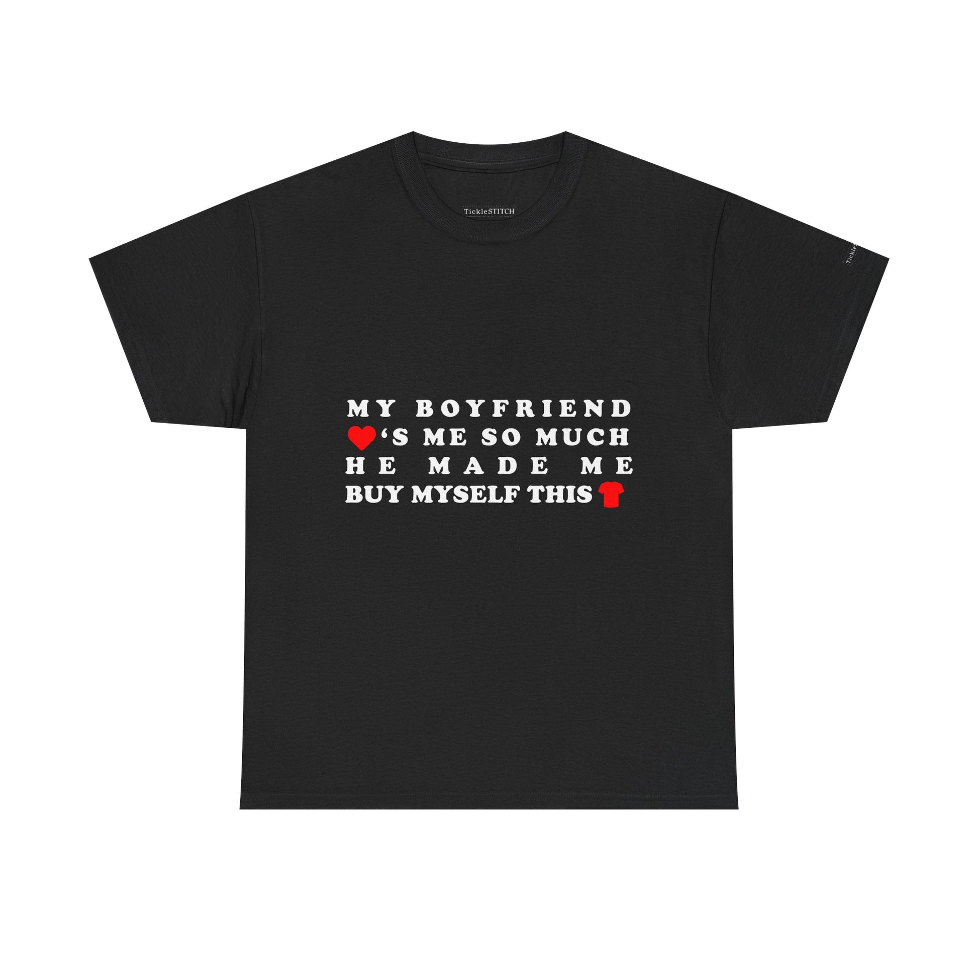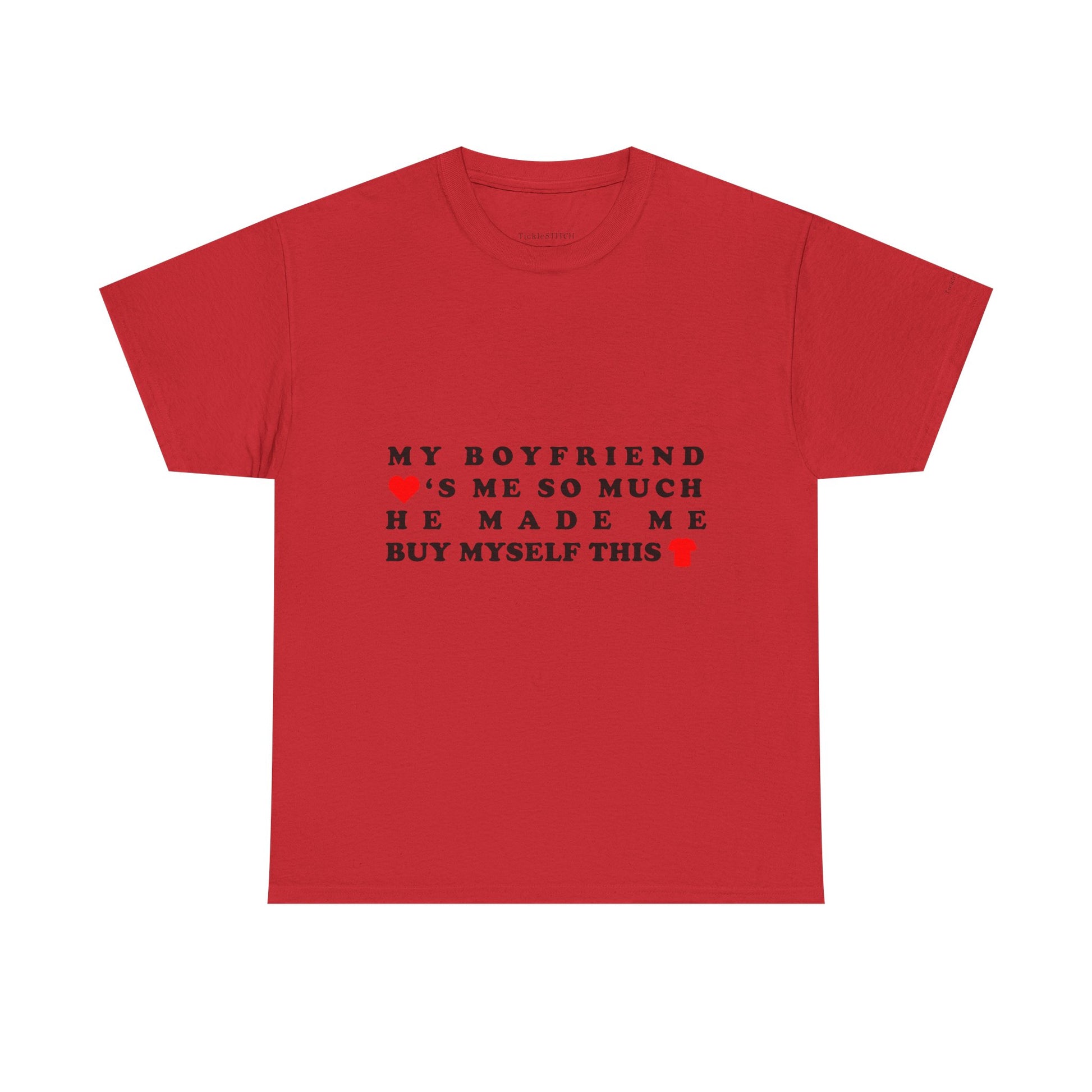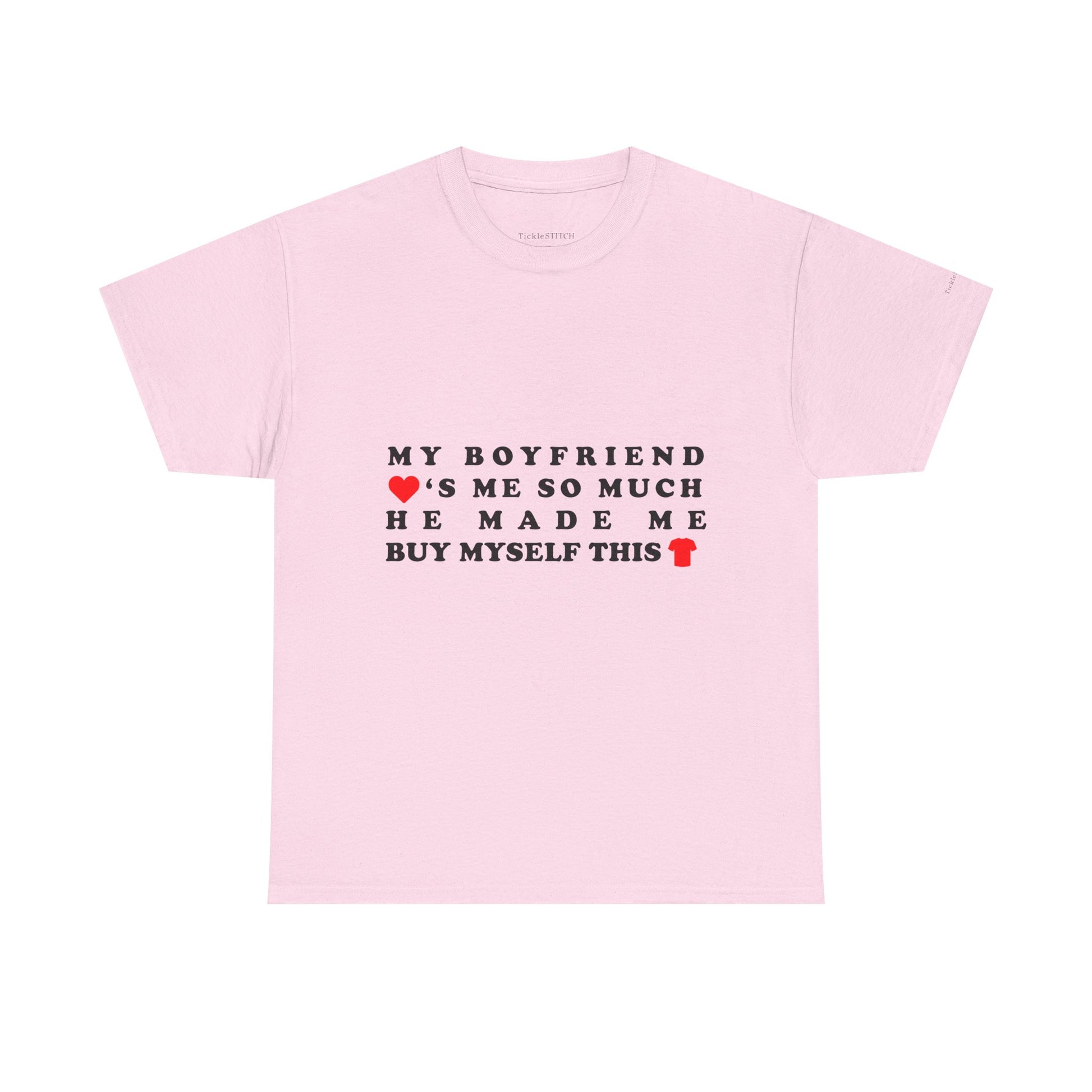 This hilarious "My Boyfriend Loves Me So Much He Made Me Buy Myself This Shirt" tee is the perfect way to showcase your unique relationship humor It's a fantastic girlfriend gift for anyone who appreciates a good laugh about couple dynamics and the playful irony of love Ideal for Valentine's Day, anniversaries, or just because, this shirt captures that specific brand of boyfriend humor where self-purchase becomes a loving gesture.