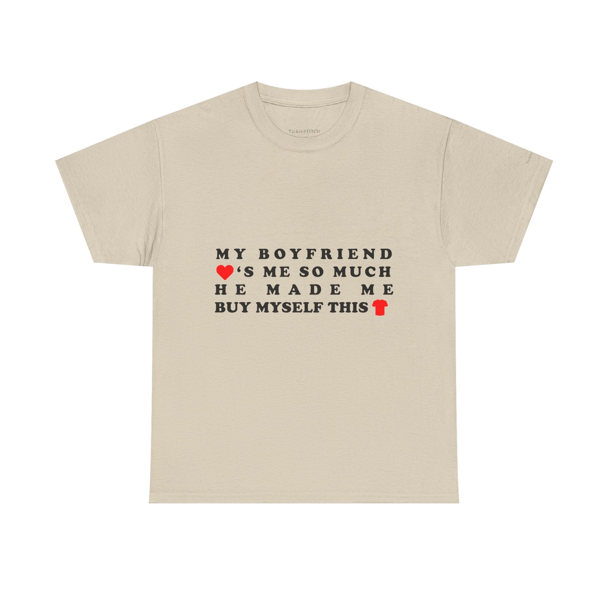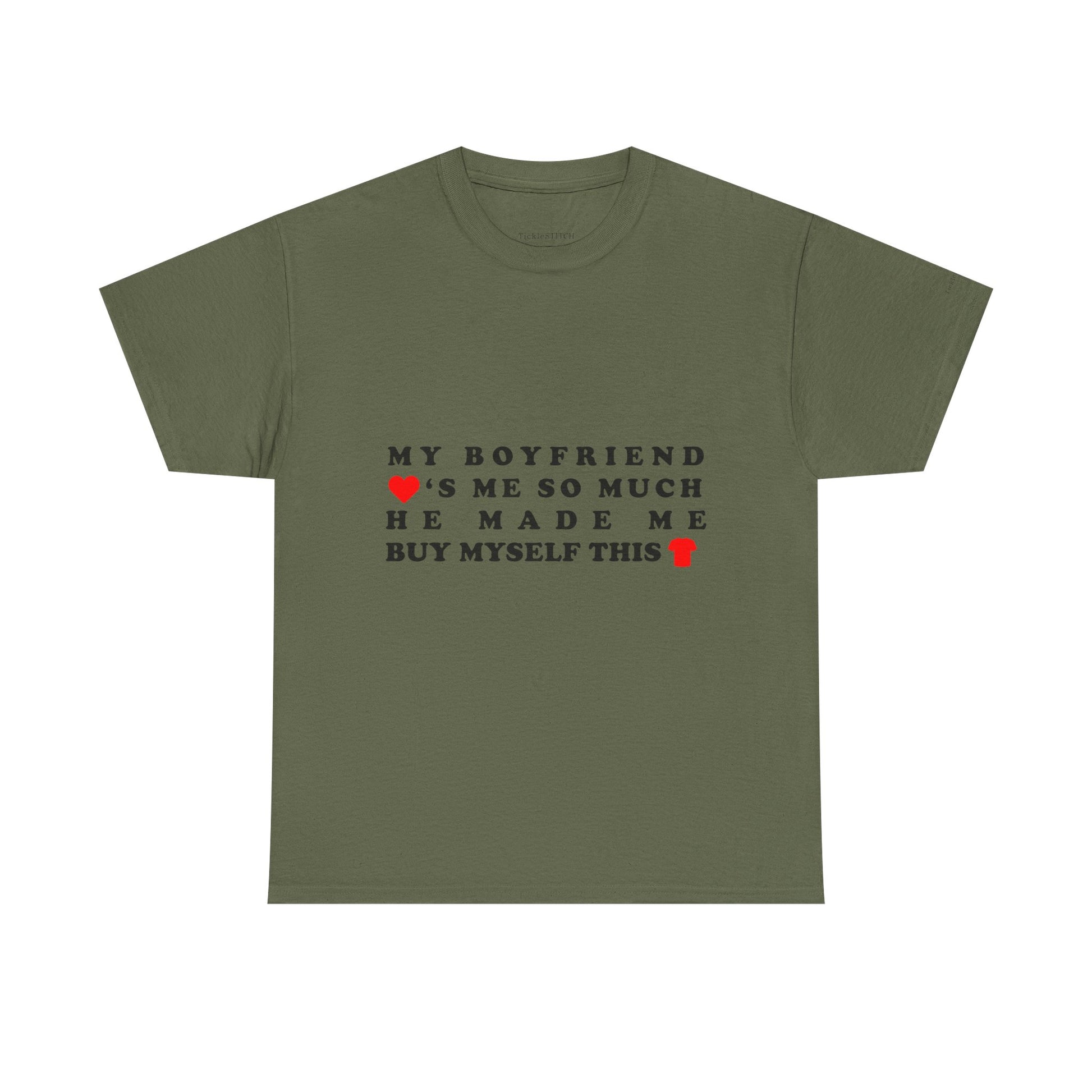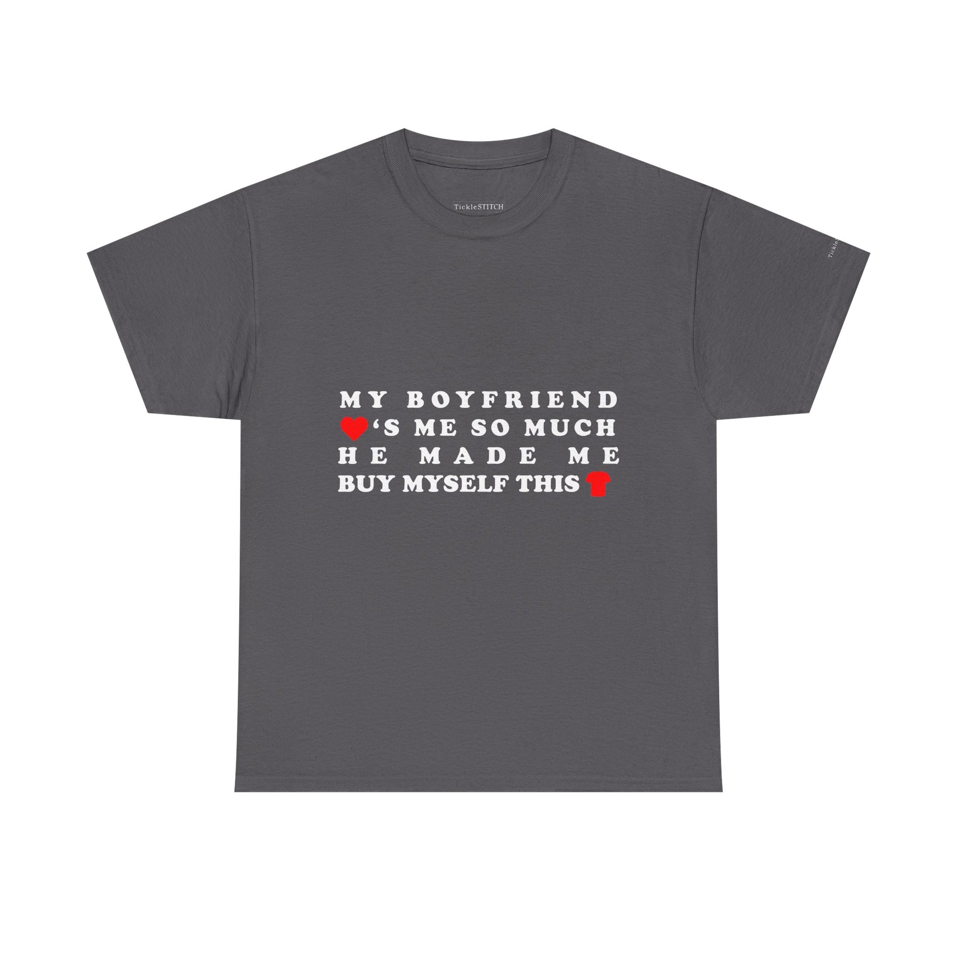 This hilarious "My Boyfriend Loves Me So Much He Made Me Buy Myself This Shirt" tee is the perfect way to showcase your unique relationship humor It's a fantastic girlfriend gift for anyone who appreciates a good laugh about couple dynamics and the playful irony of love Ideal for Valentine's Day, anniversaries, or just because, this shirt captures that specific brand of boyfriend humor where self-purchase becomes a loving gesture.
