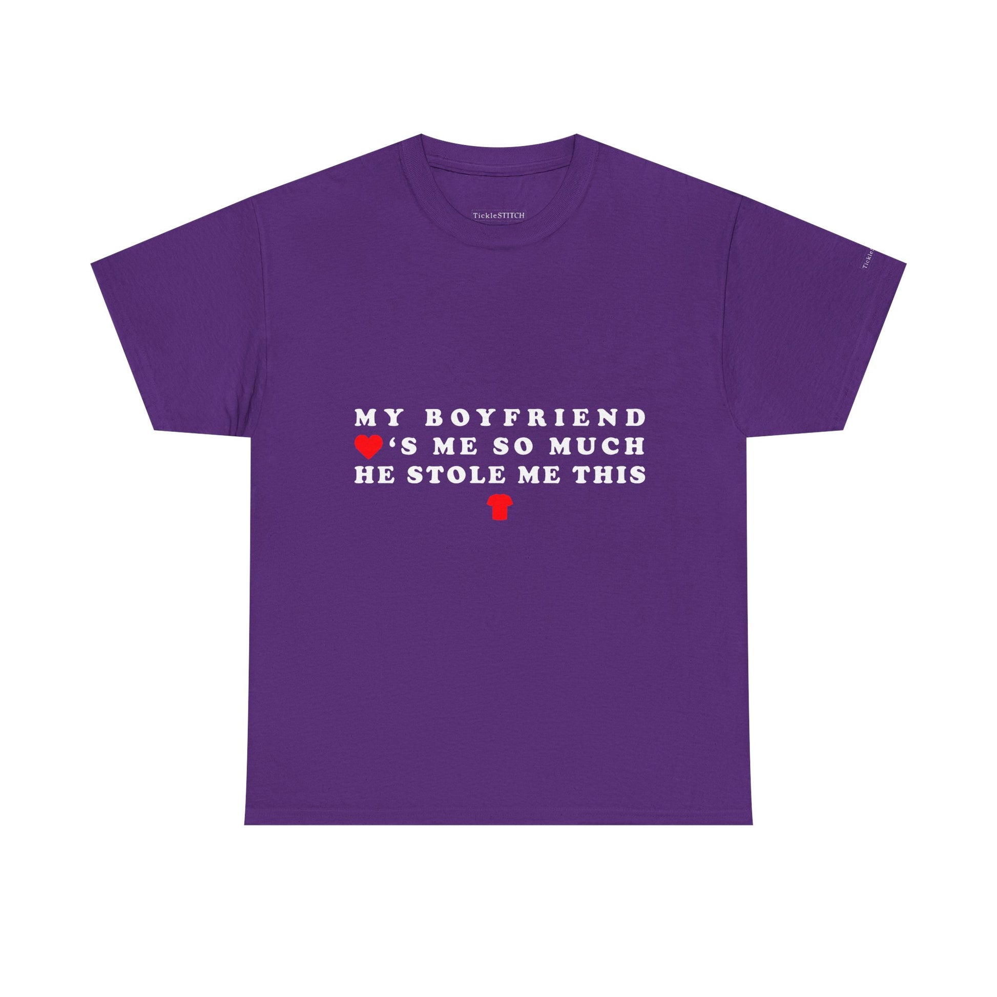 This funny boyfriend stole shirt is a conversation starter, celebrating that special bond where love knows no bounds, even if it involves a little 'stolen' affection The design perfectly blends relationship comedy with a touch of silly love humor, making it a standout piece in any wardrobe Whether you're gifting it to your girlfriend or wearing it yourself, this stolen shirt is sure to bring smiles and laughter, highlighting the funny side of couple humor and boyfriend love.
