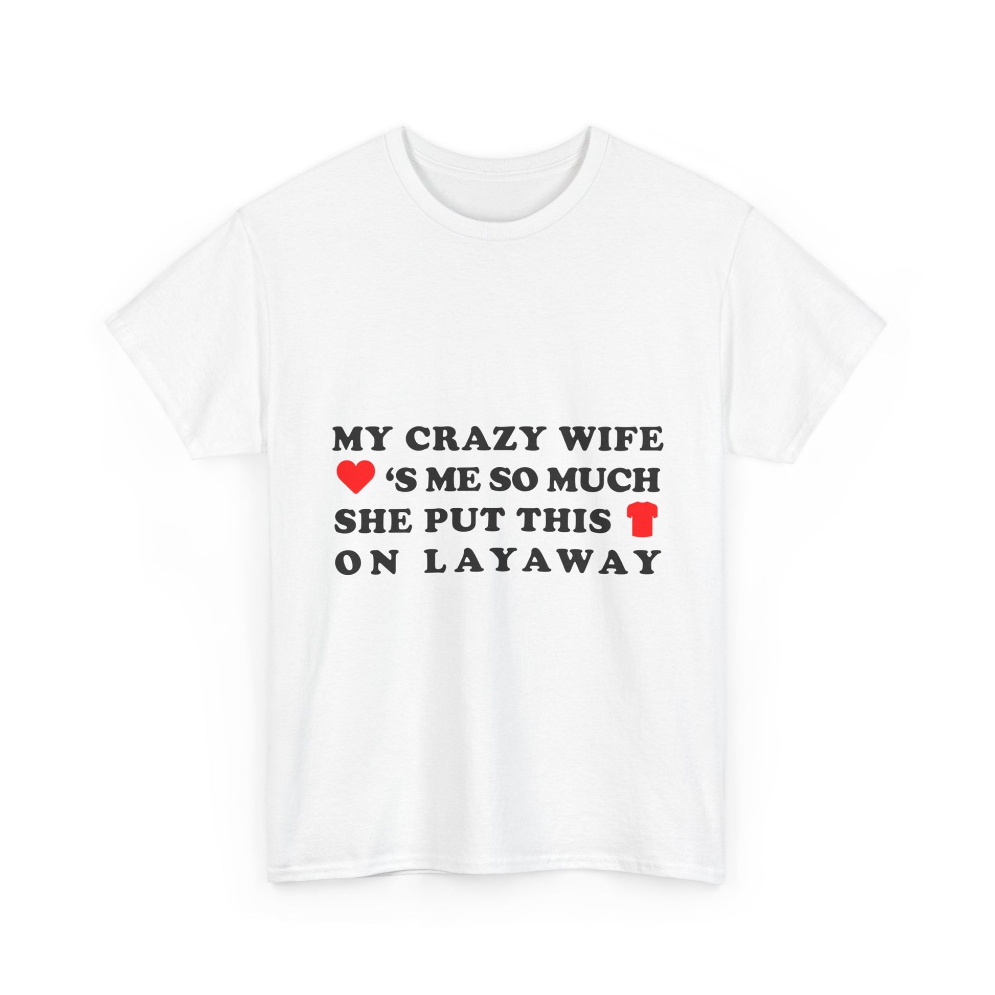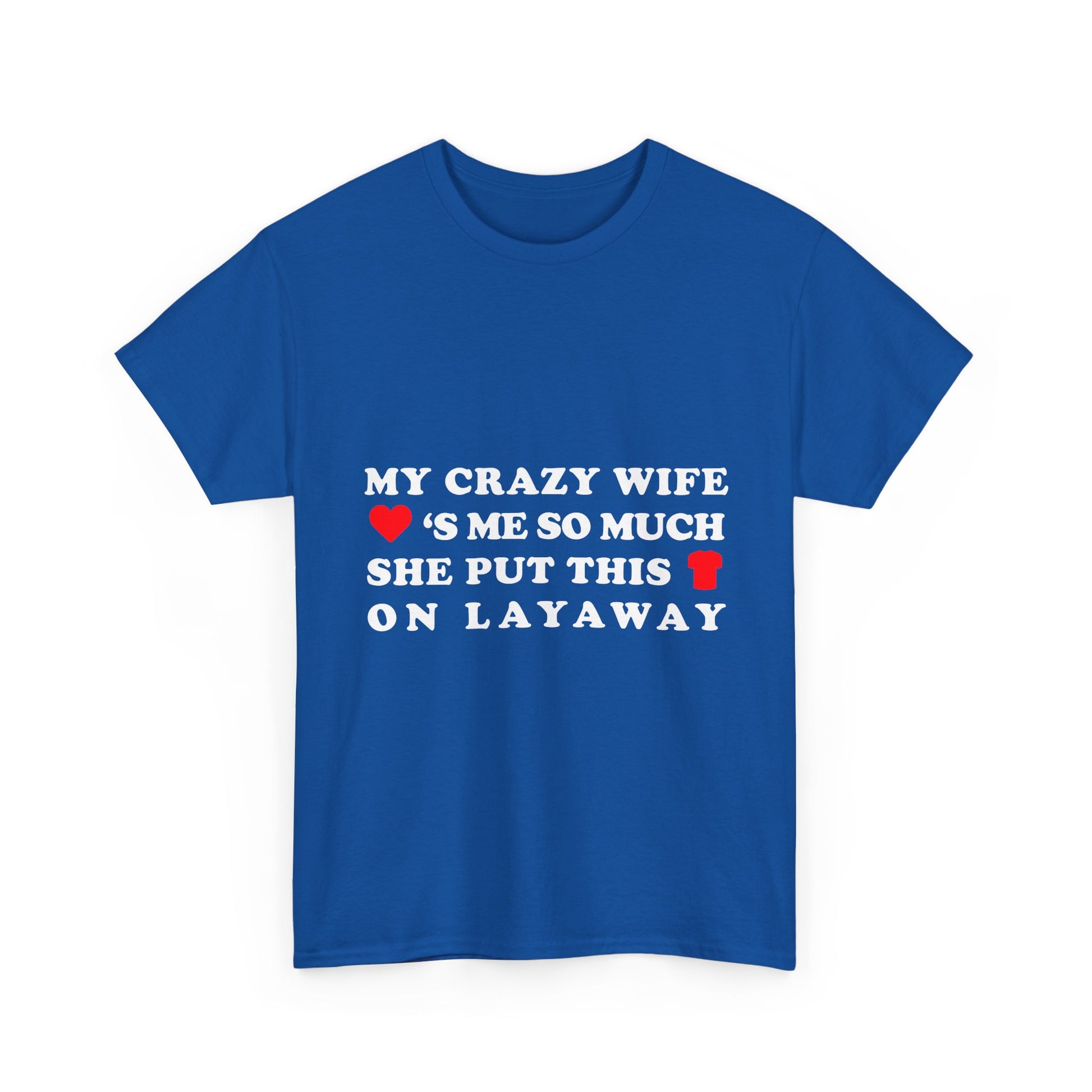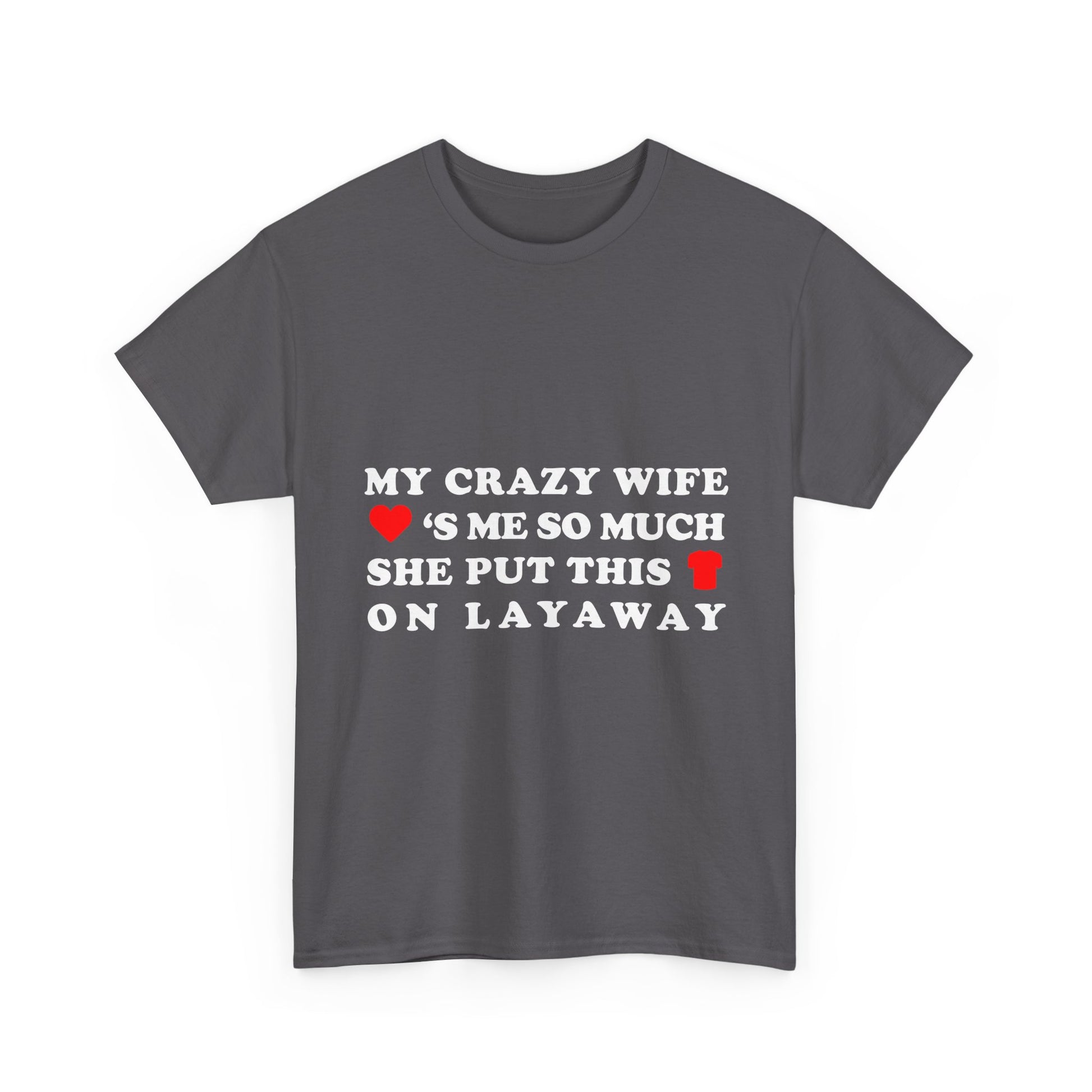 crazy wife loves me, wife layaway shirt, layaway humor, crazy wife humor, marriage humor, wife financial humor, valentines day gift, anniversary gift, husband gift, trophy husband, married life humor, wife love, marriage jokes, crazy wife gift, husband shirt, married couple humor, wife layaway, love marriage, marriage comedy, spouse humor