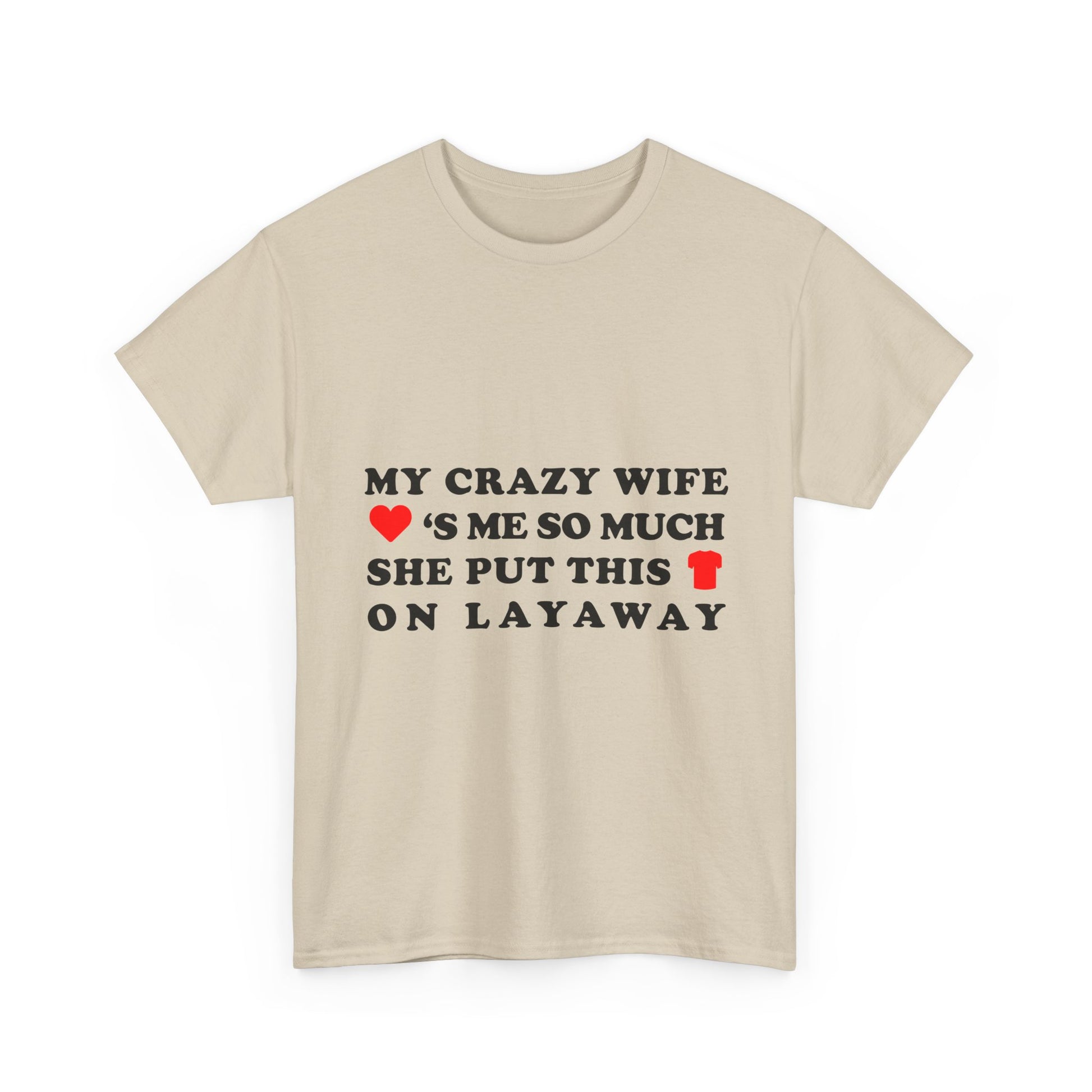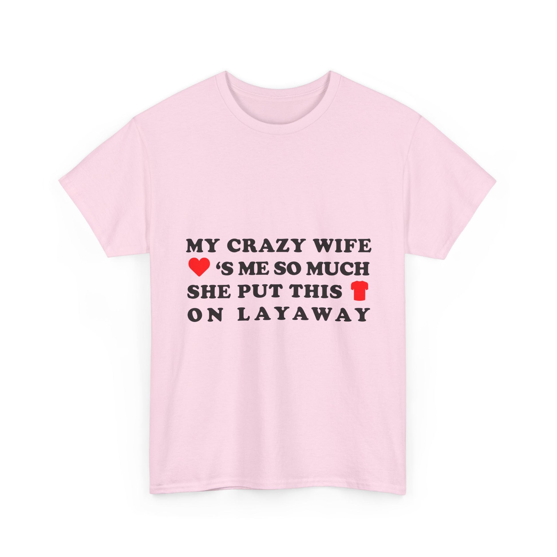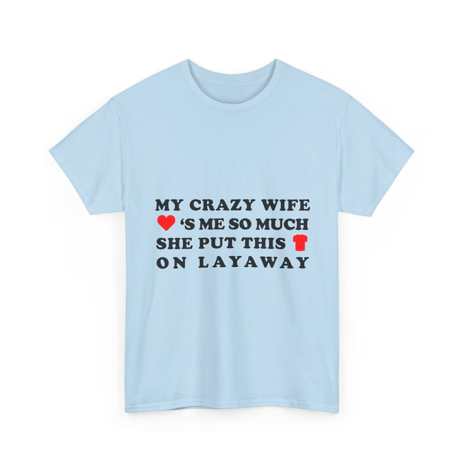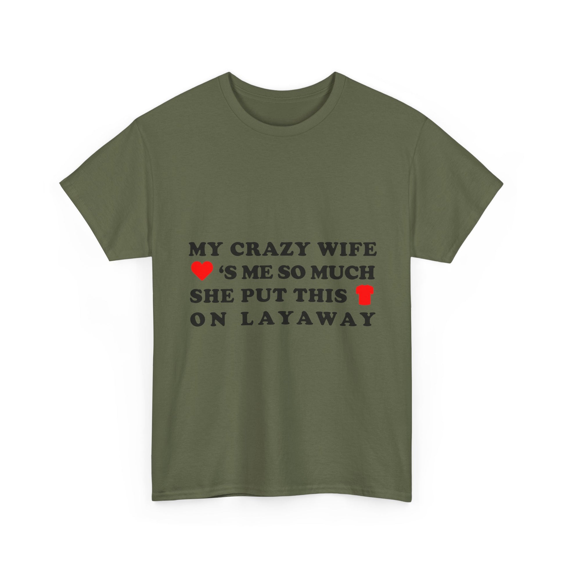 crazy wife loves me, wife layaway shirt, layaway humor, crazy wife humor, marriage humor, wife financial humor, valentines day gift, anniversary gift, husband gift, trophy husband, married life humor, wife love, marriage jokes, crazy wife gift, husband shirt, married couple humor, wife layaway, love marriage, marriage comedy, spouse humor