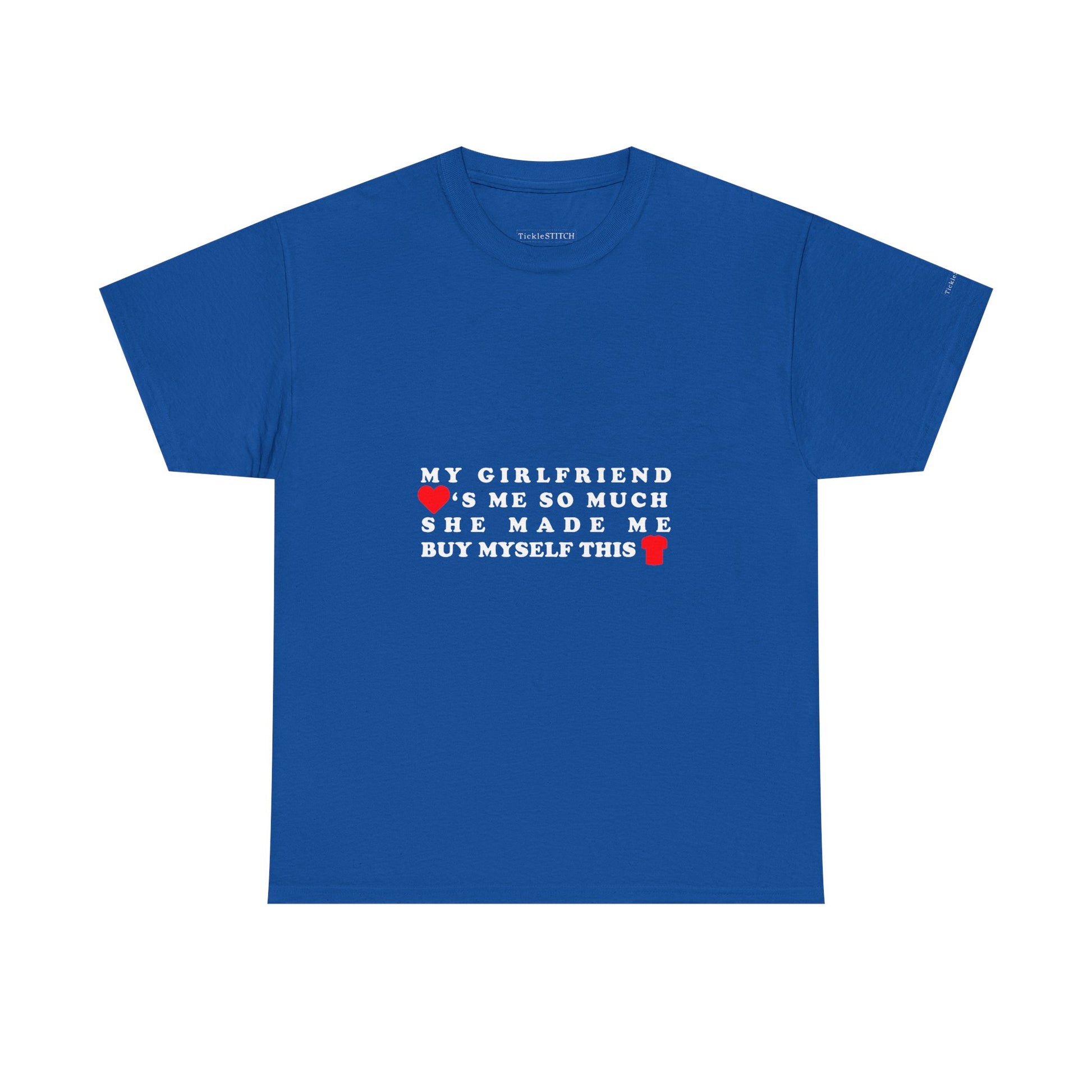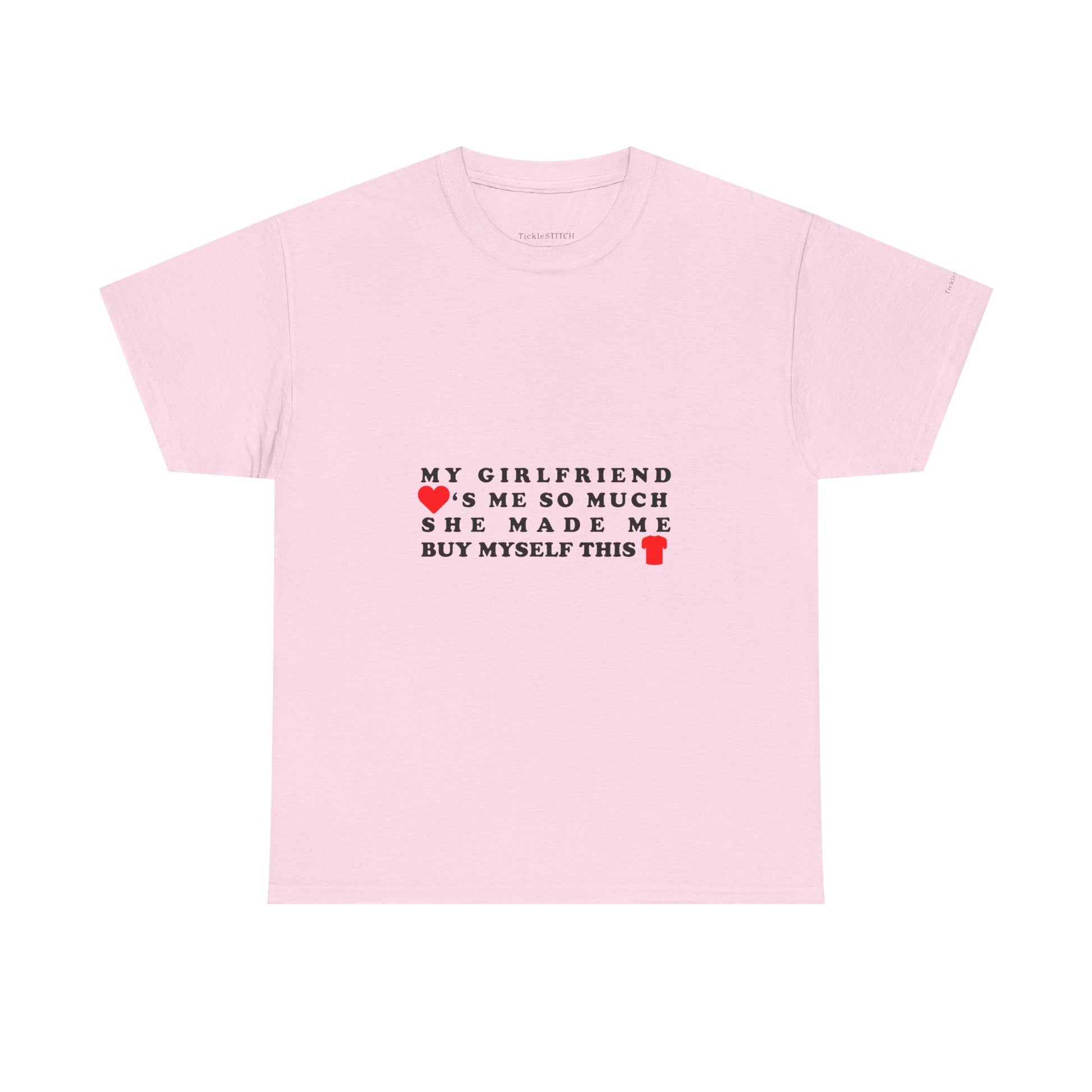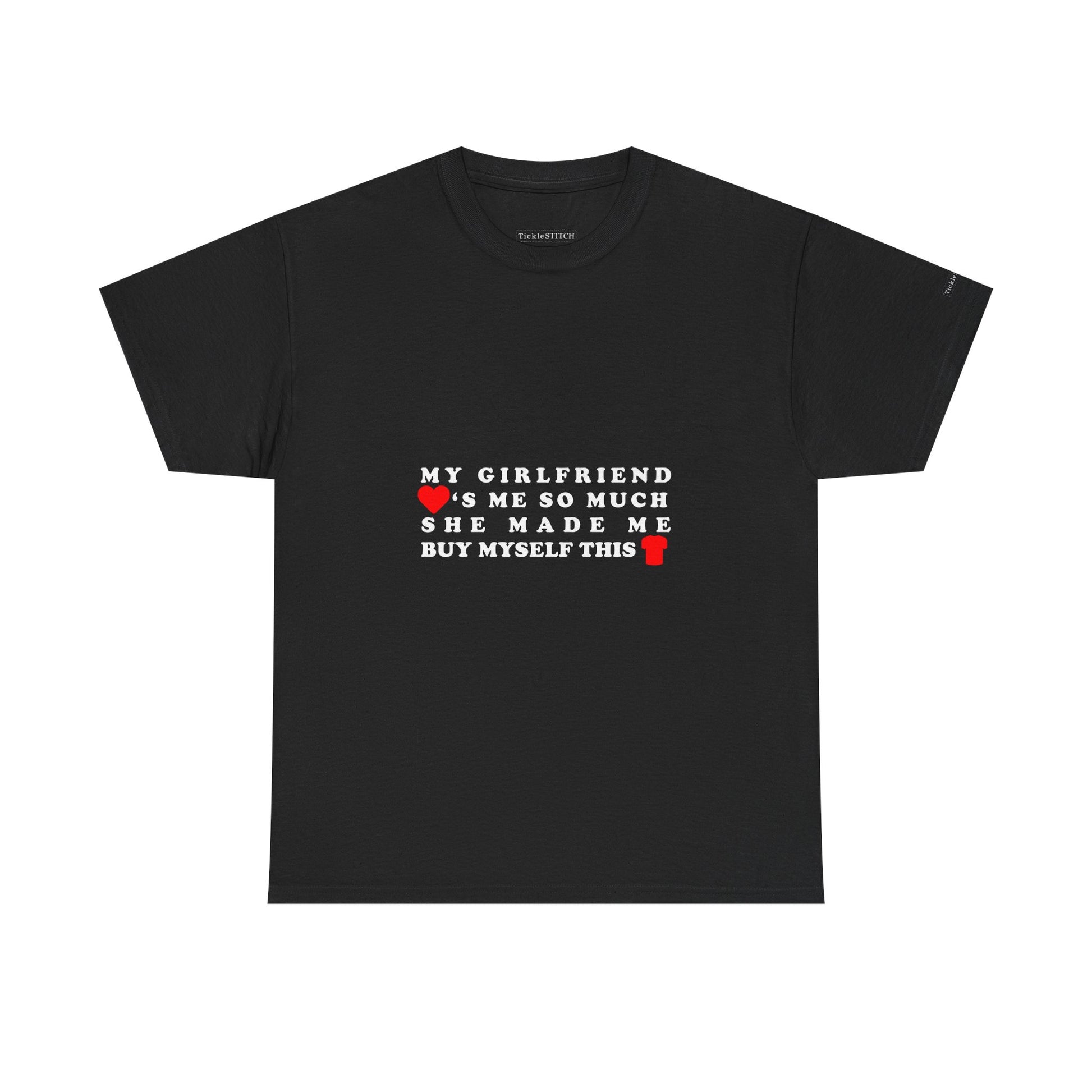 Show off your unique relationship dynamic with this hilarious 'My Girlfriend Loves Me So Much She Made Me Buy Myself This Shirt' tee Perfect for boyfriends who appreciate a good laugh and a little nudge from their significant other, this shirt is a fantastic way to celebrate your love with a touch of playful humor It’s an ideal gift for Valentine's Day, anniversaries, or just because your girlfriend wants to make sure you look good (or at least wear what she picked out.