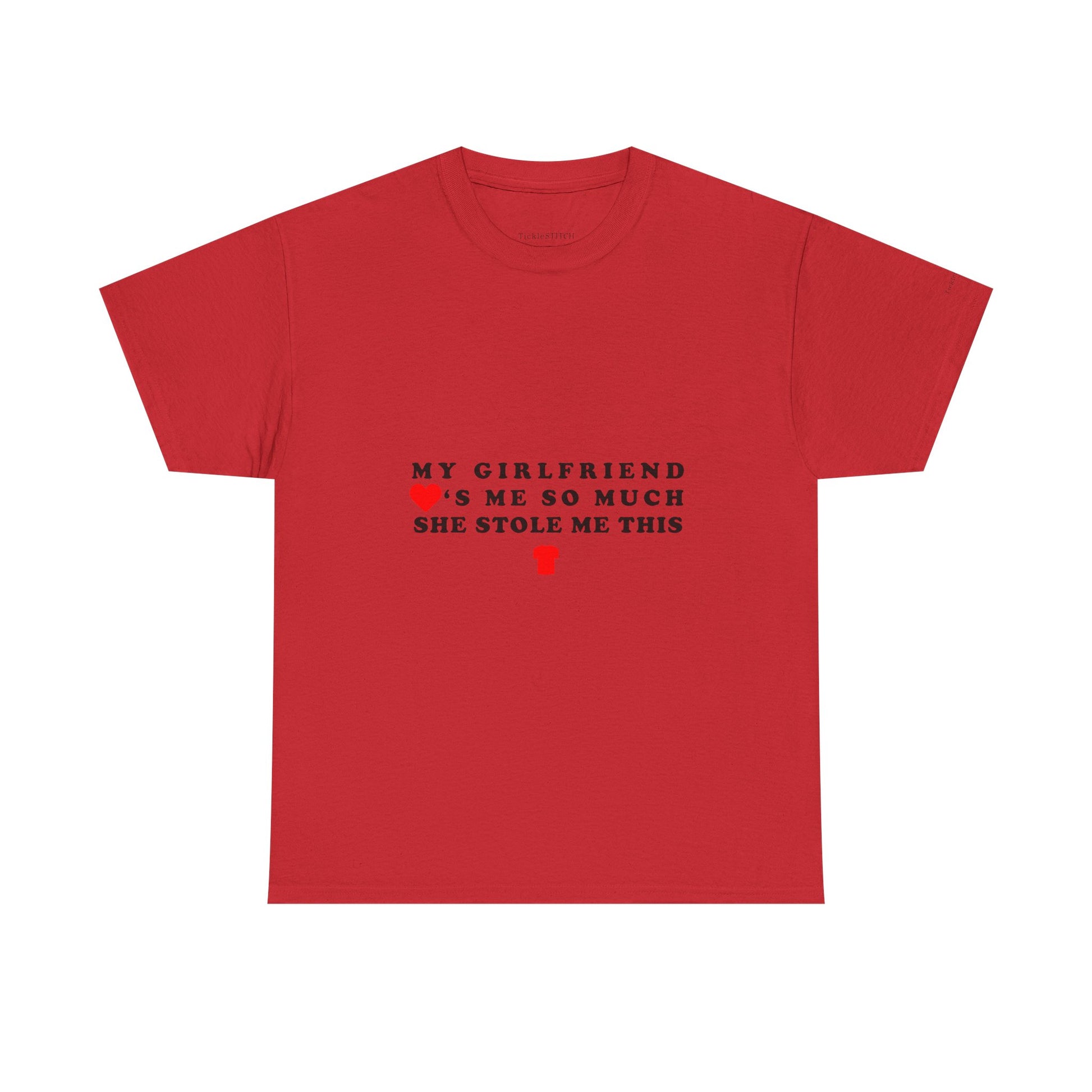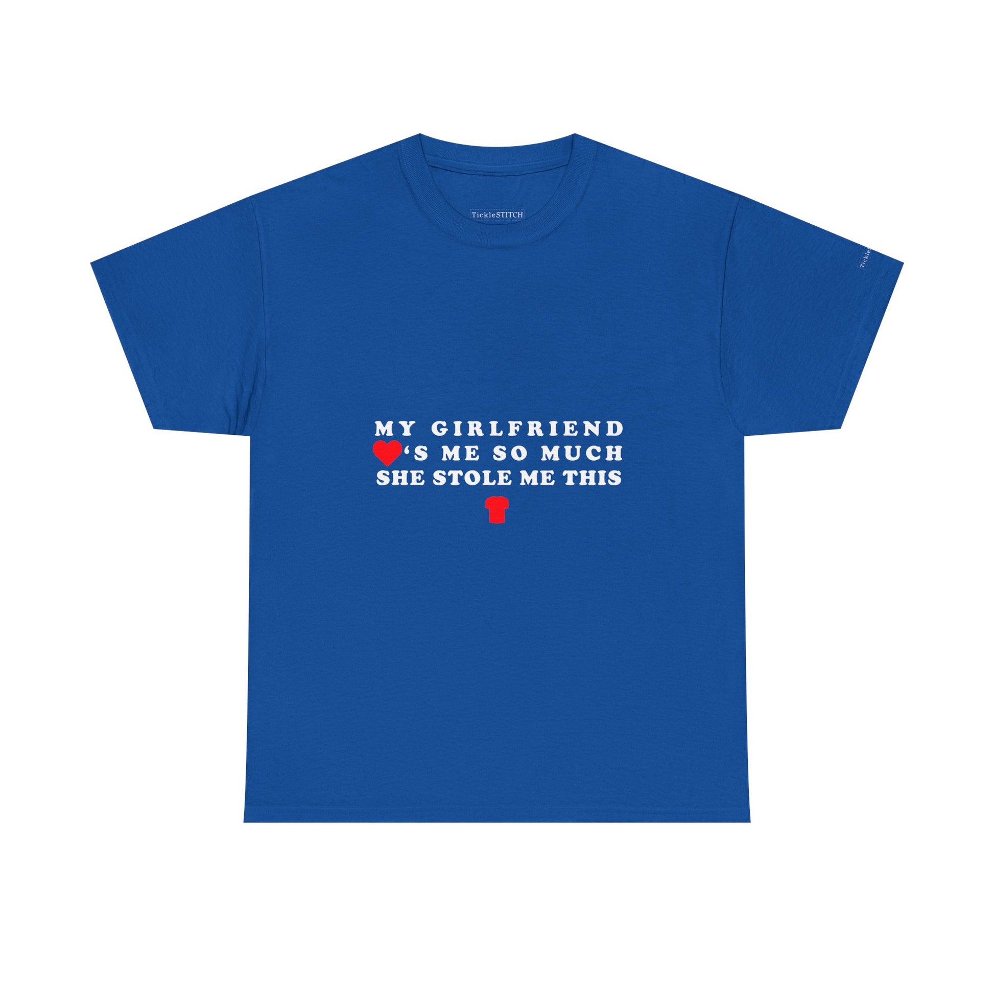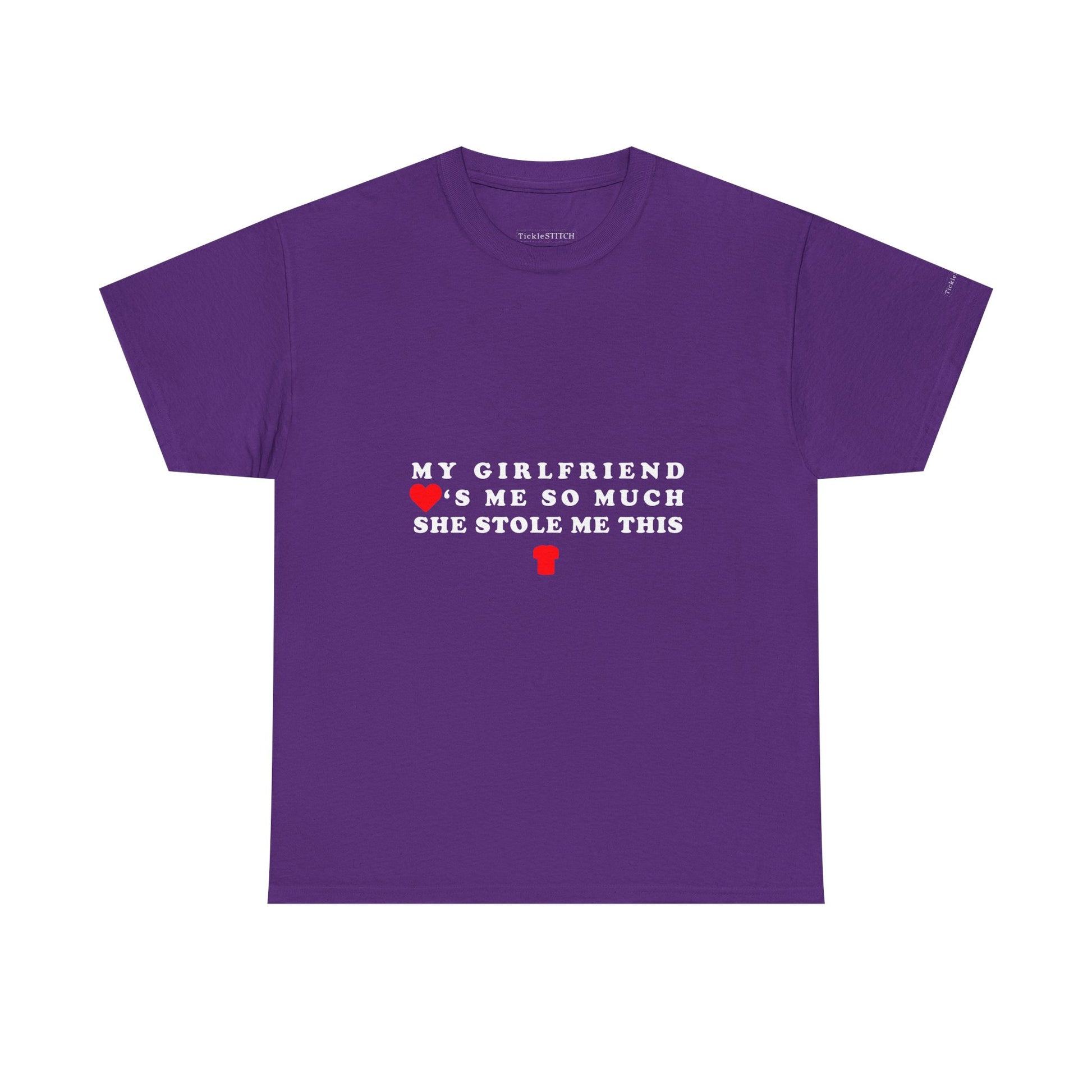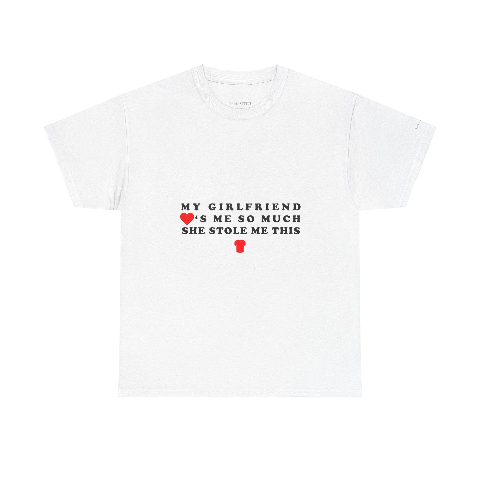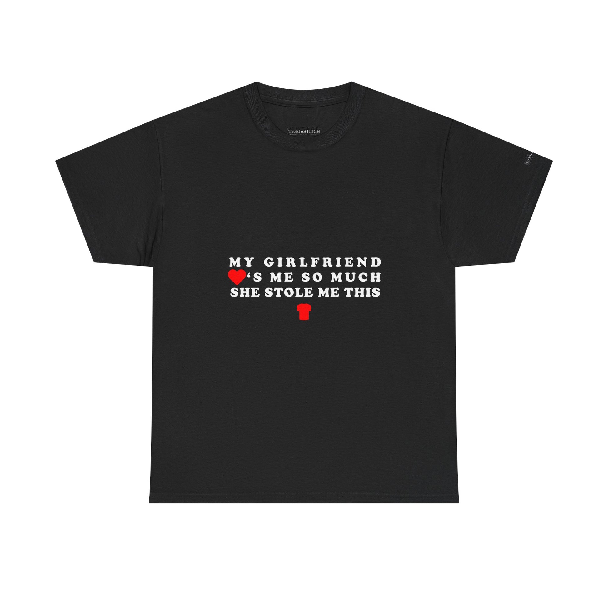 Crafted from soft, comfortable fabric, this boyfriend gift is ideal for casual wear, making it a go-to for any occasion Whether it's a Valentine's Day gift, an anniversary surprise, or just a funny gesture to acknowledge your girlfriend's 'love theft,' this relationship humor shirt is a winner Celebrate your couple humor and the funny side of love with a design that speaks volumes about your bond.