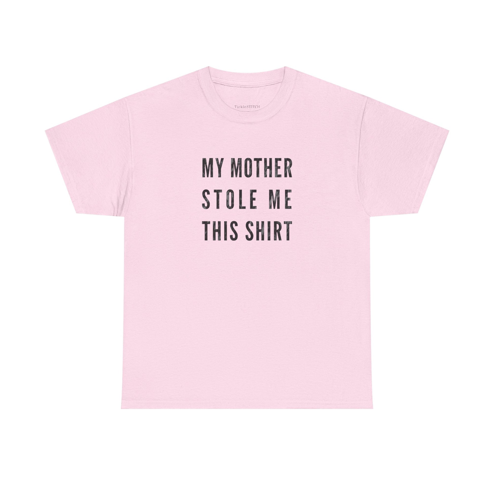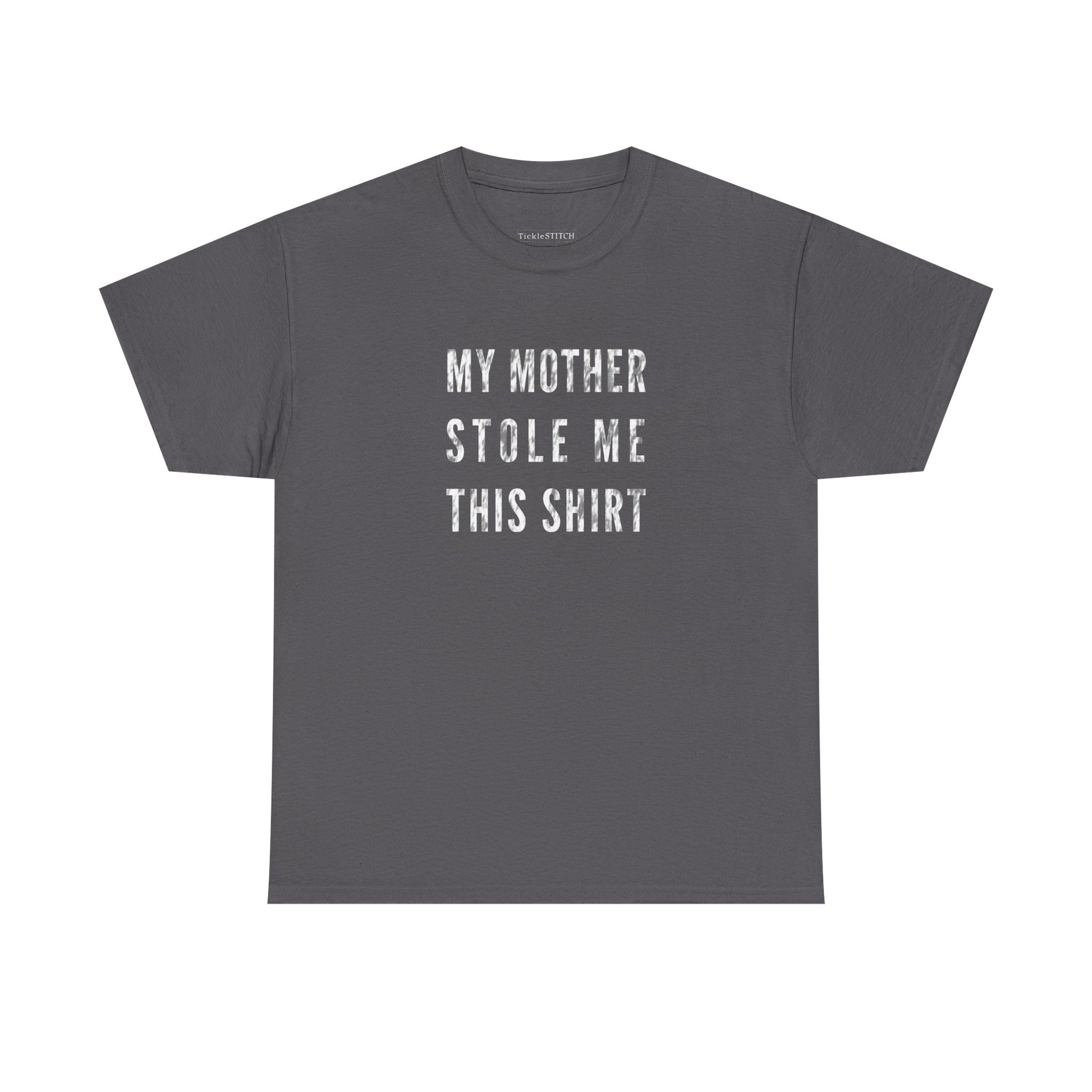 Celebrate the unique bond between a mother and child with this hilariously honest 'My Mother Stole Me This Shirt' tee. Perfect for anyone who's ever experienced the 'joy' of their mom 'borrowing' their favorite clothes, this shirt captures that special brand of family humor and unconditional mother love. It's a fantastic gift from mom, or a cheeky present for a son or daughter who knows the struggle. Crafted for comfort and style, this tee is more than just apparel; it's a statement about the unbreakable, sometimes thieving, family bond. Whether it's a mom gift, a token of mother love, or just a funny way to acknowledge mom's unique sense of style (and ownership), this shirt is sure to bring smiles and knowing nods. Show off your family humor and the enduring connection with your mother, even if it means sharing your wardrobe. A perfect conversation starter and a testament to the funny side of family theft, this shirt is a must-have for any mother-child duo.