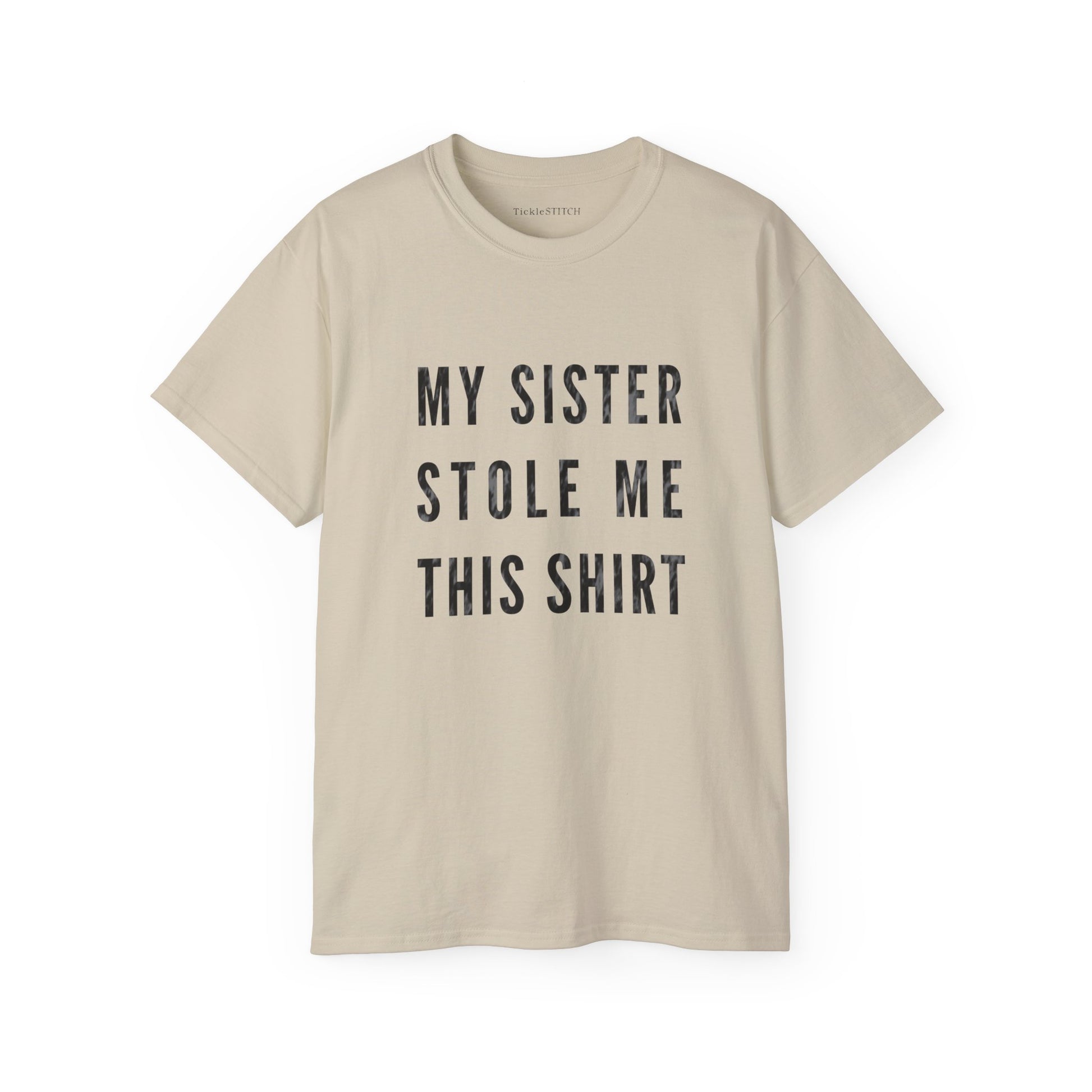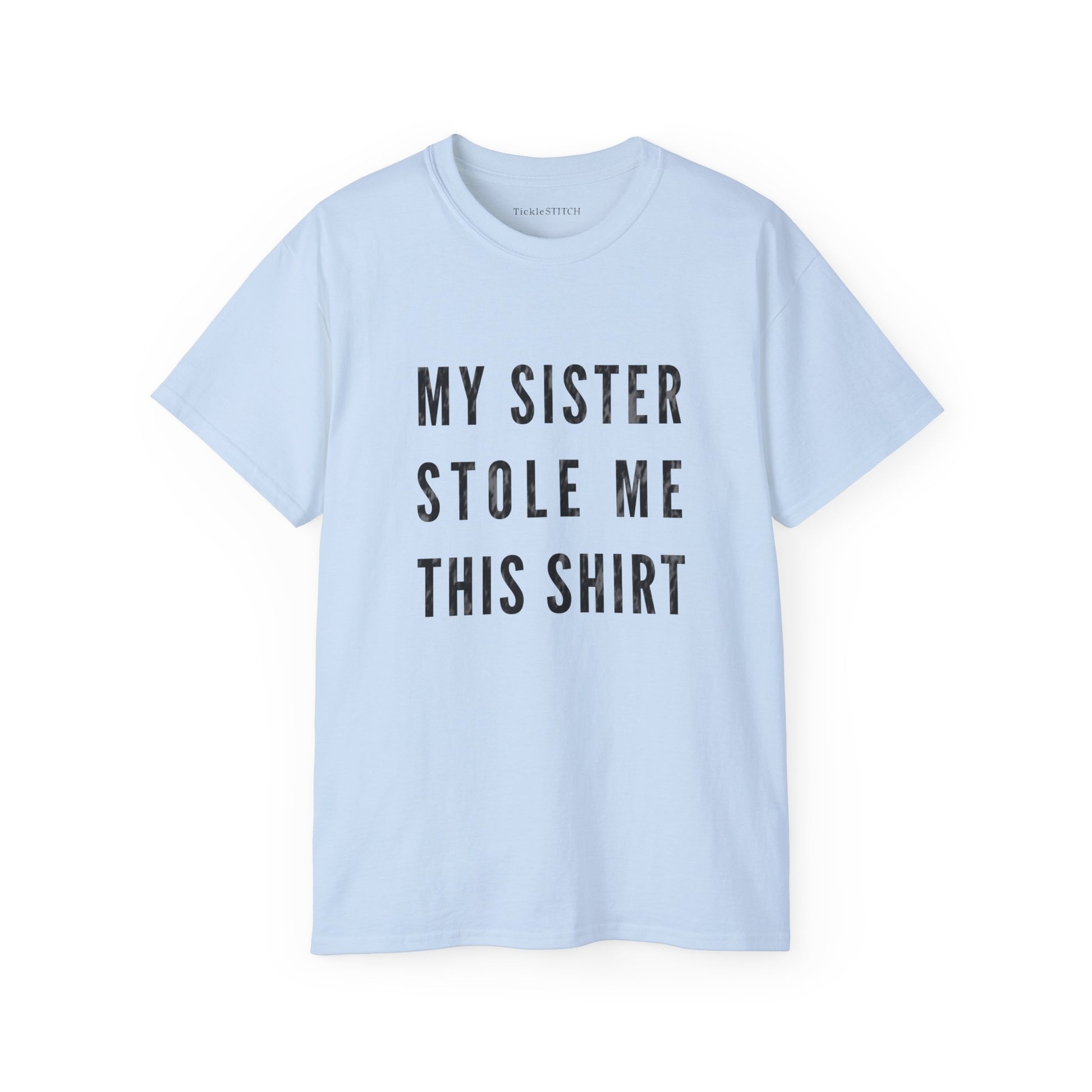 Does this shirt look a little too familiar? It probably should! Celebrate that uniquely special (and often sticky) sibling bond with our hilarious 'My Sister Stole Me This Shirt' graphic tee. This witty design is the ultimate declaration of sisterly 'love' and good-natured sibling rivalry, capturing the essence of family humor in a way everyone can relate to.