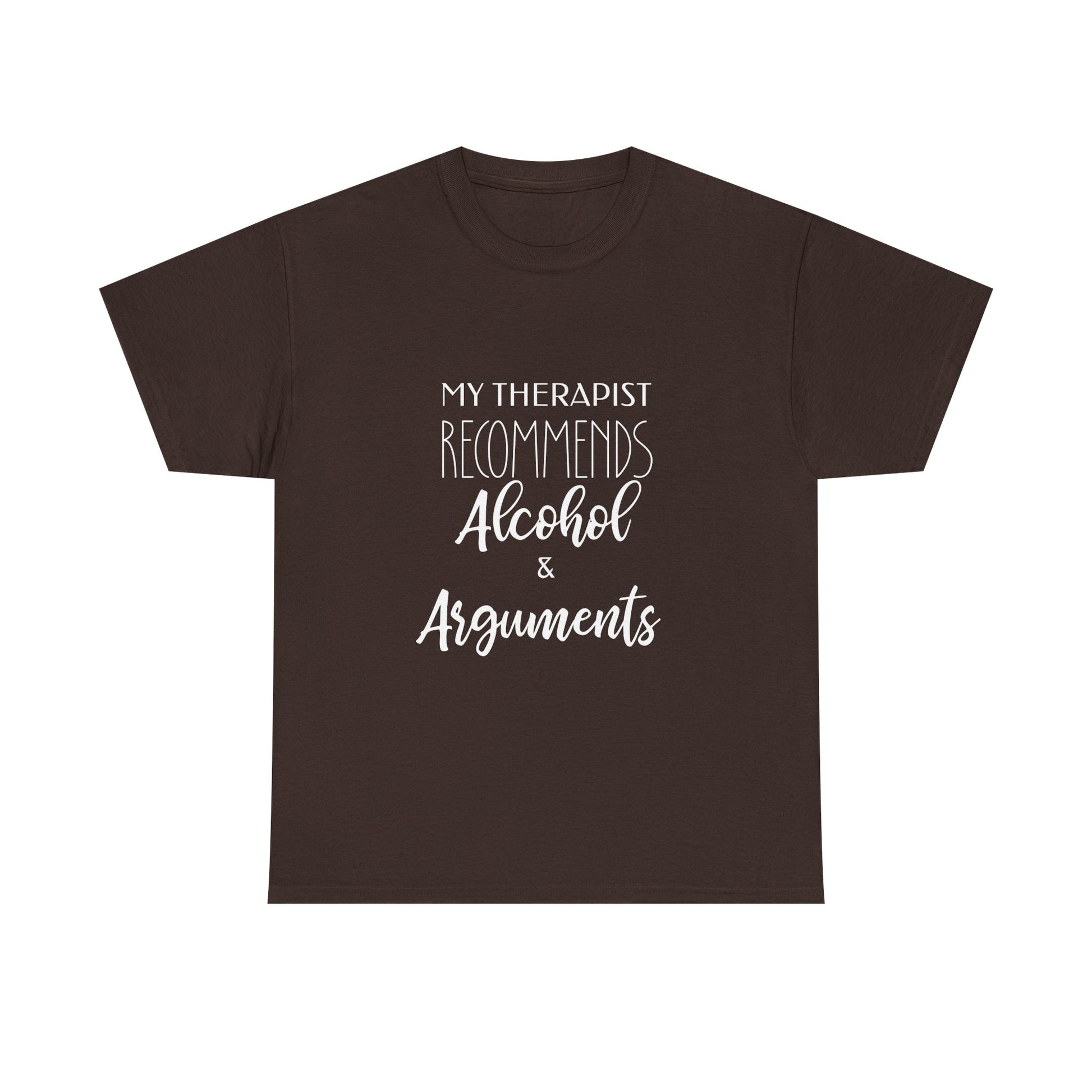 My Therapist Recommends Alcohol and Arguments Funny Therapy Tee