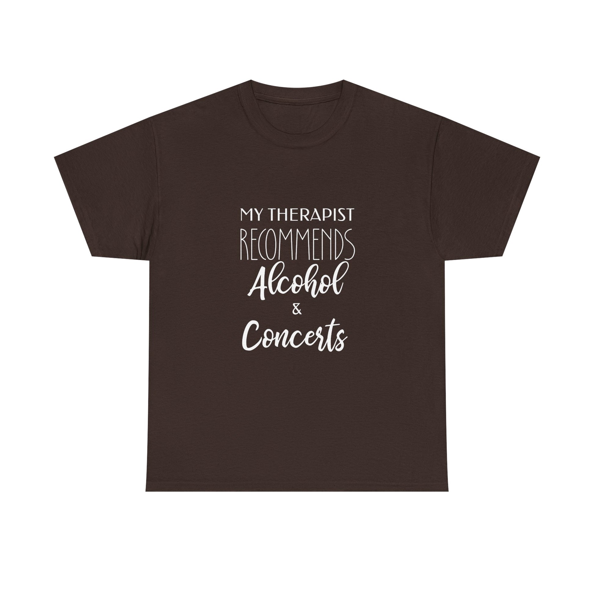 It’s the ultimate music therapy alternative for the drinking concert goer, a bold statement t-shirt reflecting your unique take on mental health humor. Whether you're enjoying a bar concert or a music festival drinking experience, this shirt proudly declares: alcohol is my therapy, concert is my therapy. It blends concert alcohol humor with relatable mental health awareness humor, making it a standout piece of humorous apparel. This funny graphic tee is a witty declaration that your therapist told me to drink and enjoy the music, celebrating the l