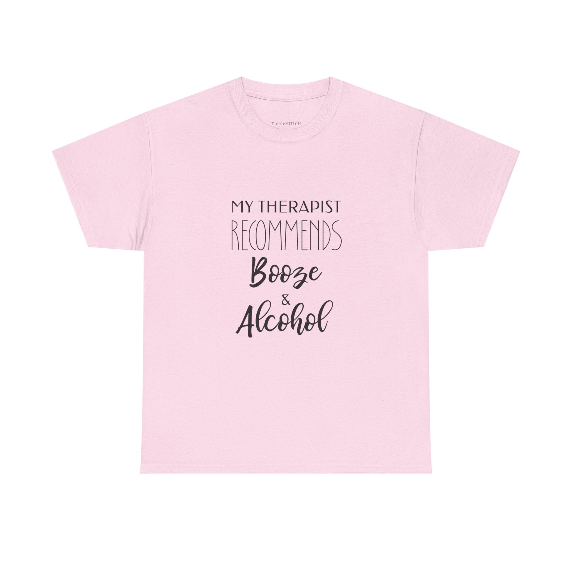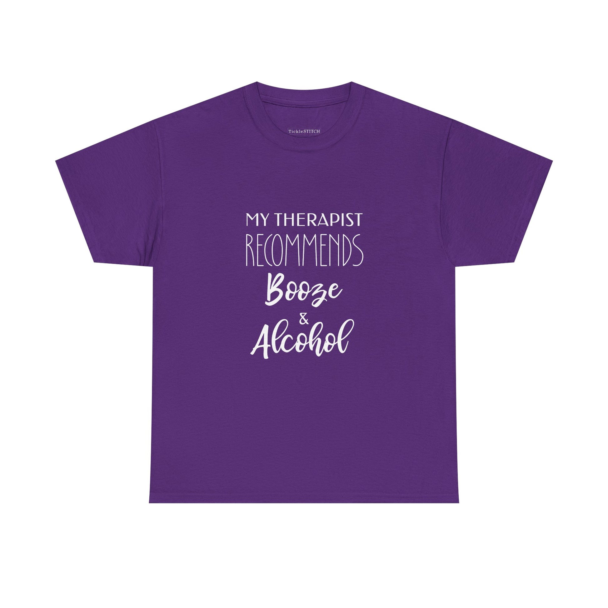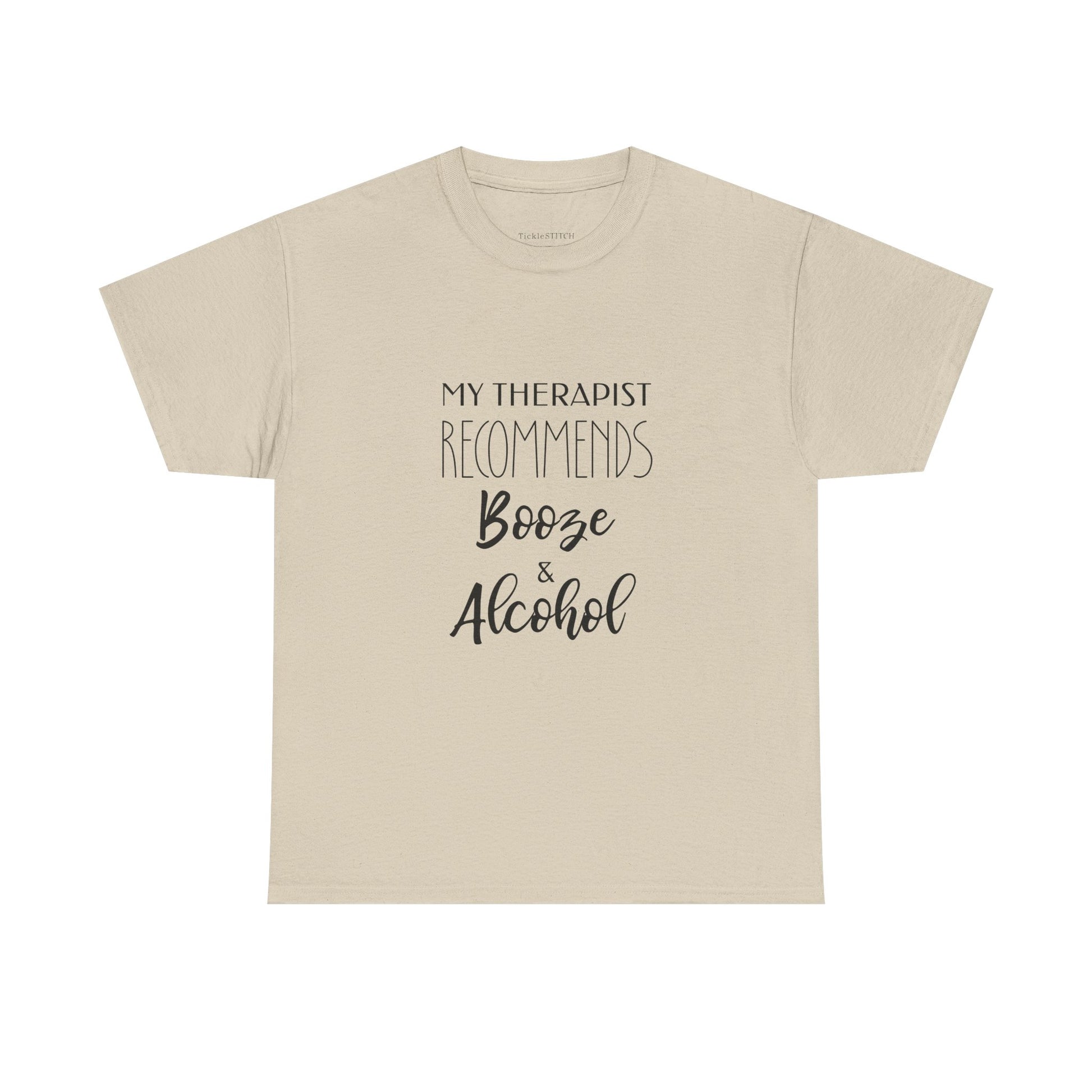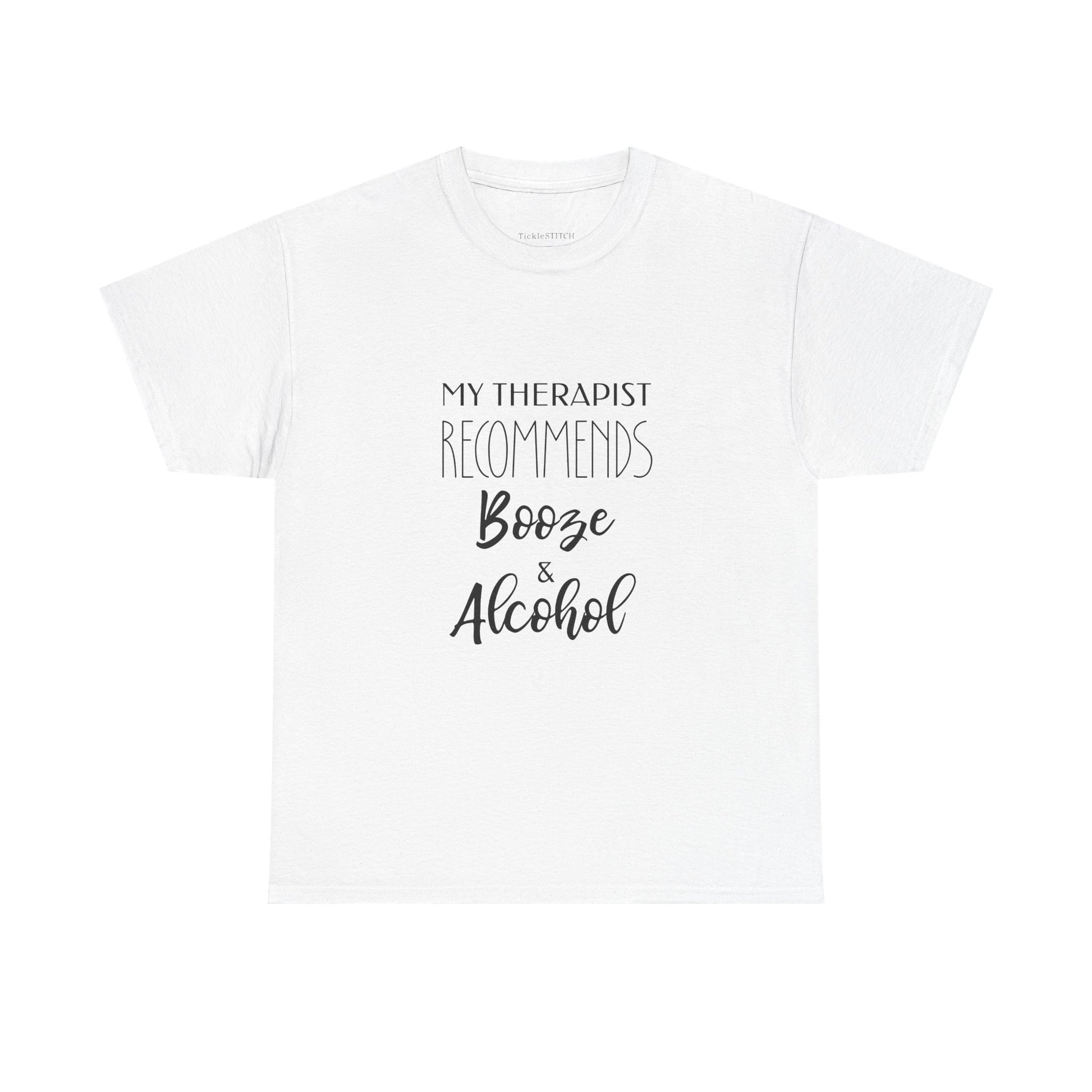 My Therapist Recommends Booze Alcohol Funny Drinking Humor T-Shirt