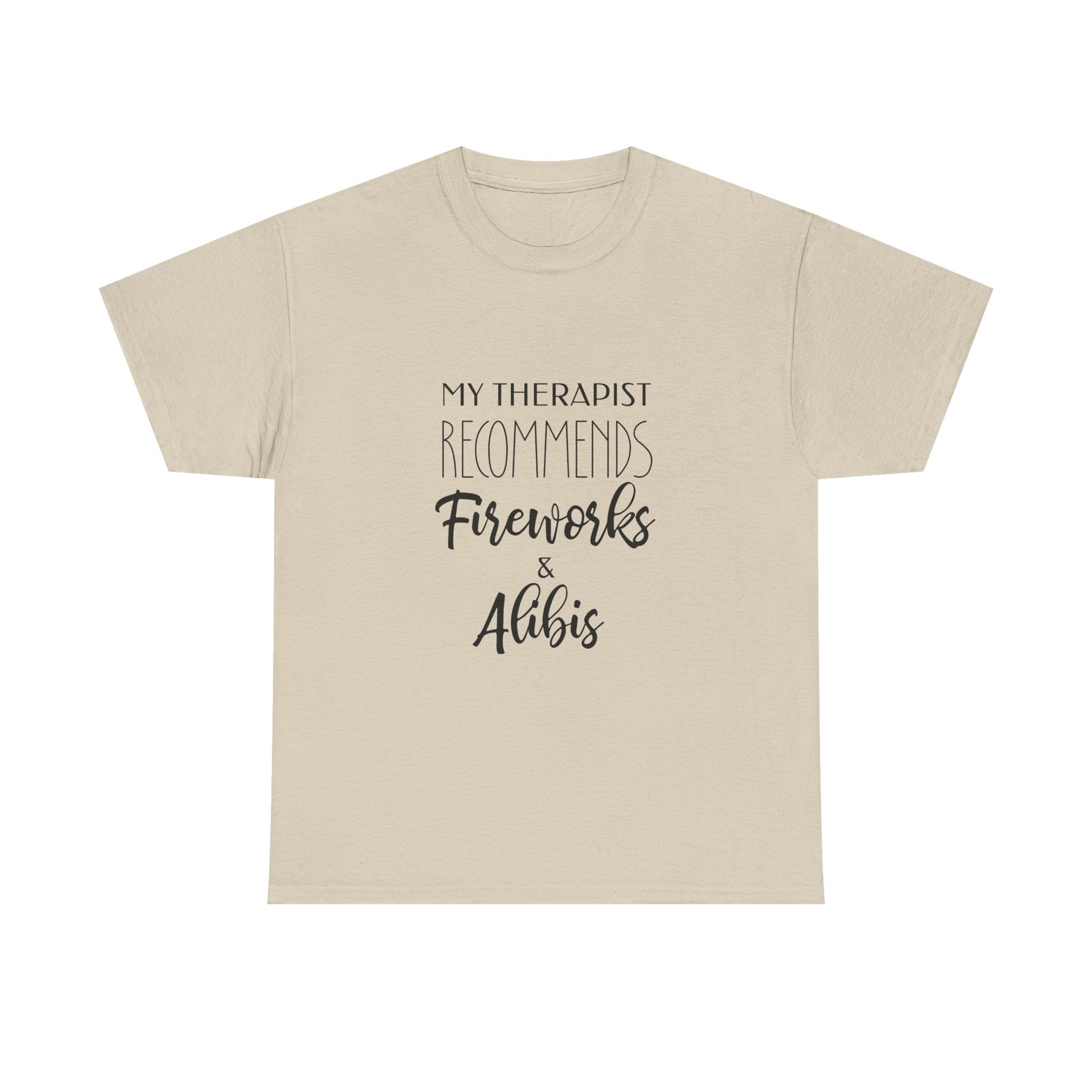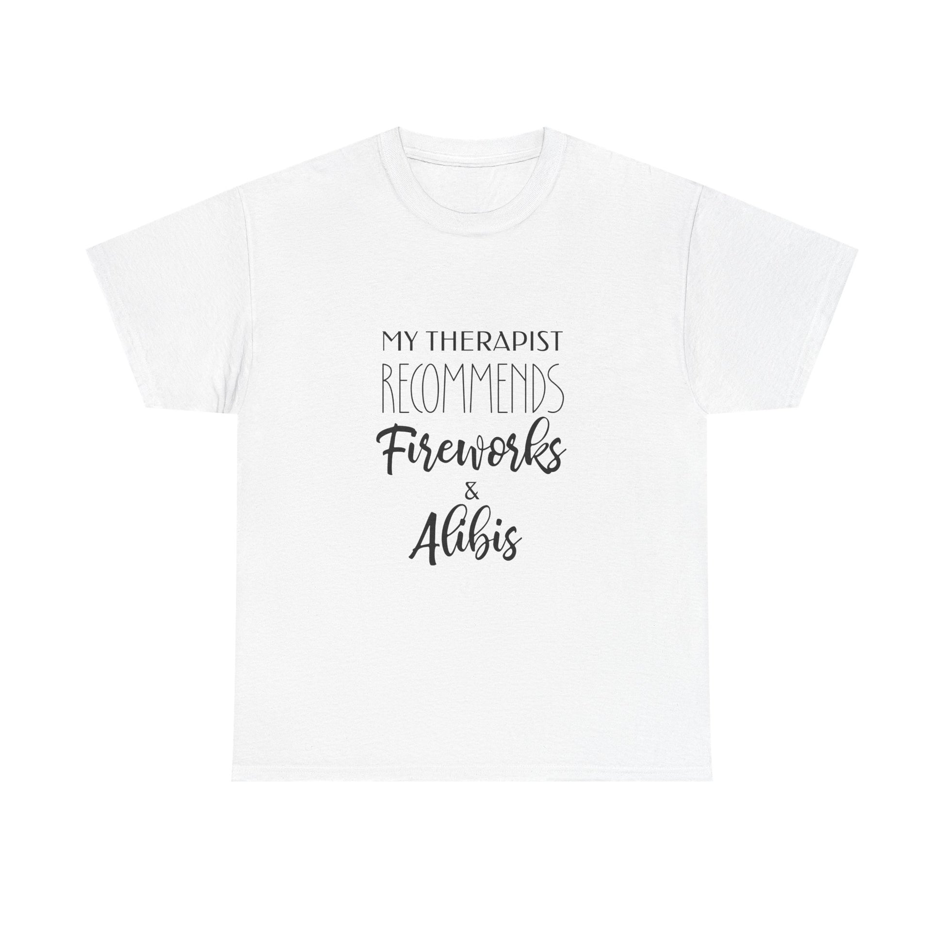 My Therapist Recommends Fireworks and Alibis Funny July 4th Shirt