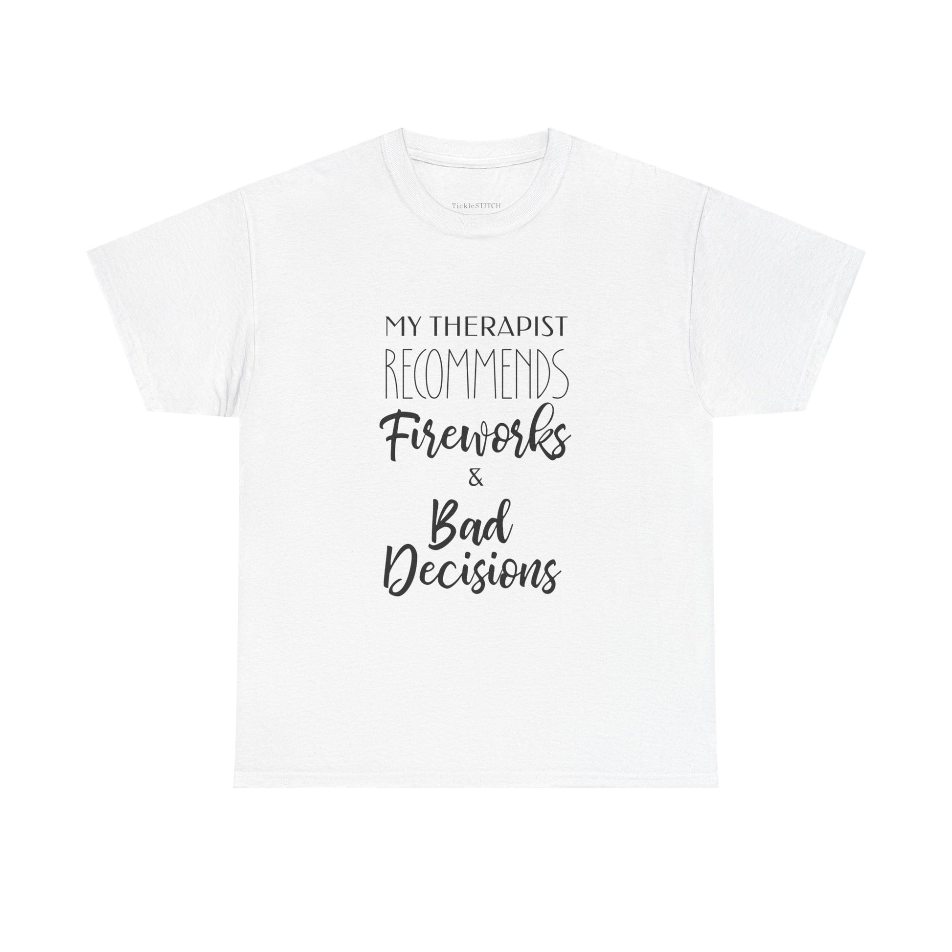 My Therapist Recommends Fireworks Bad Decisions Funny 4th of July Tee